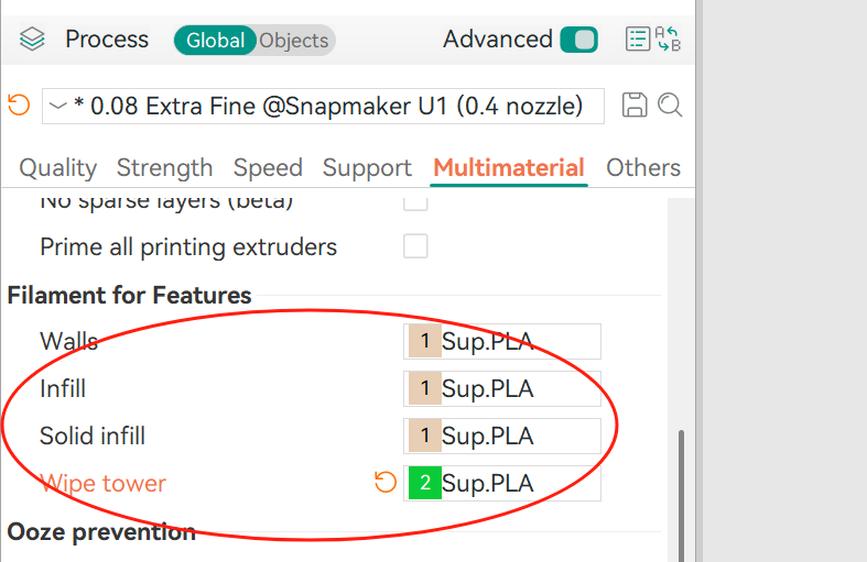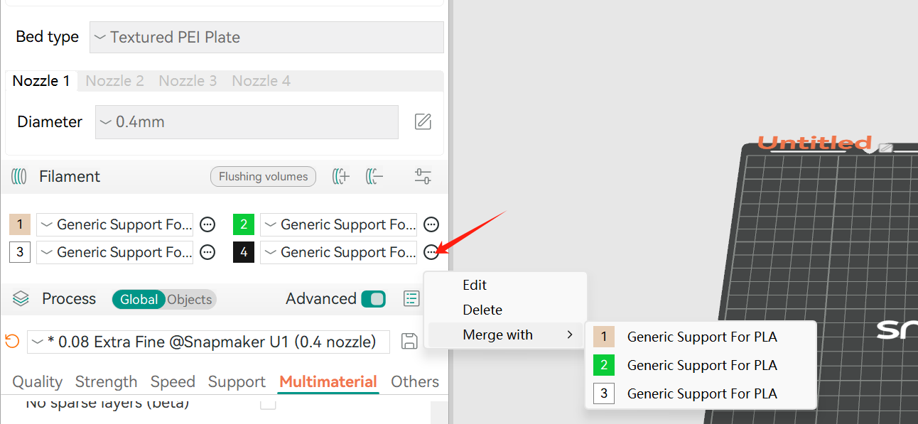 In Snapmaker Orca, using more than four filaments may cause incorrect mapping to extruders, leading to slicing calculation errors and undefined behavior.