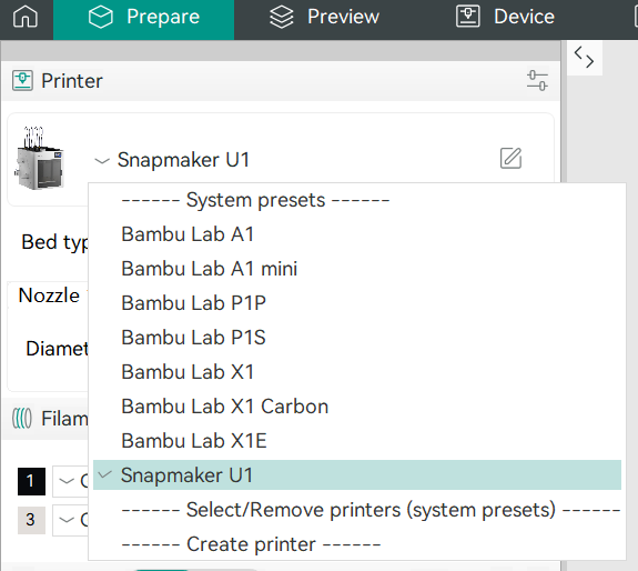 Fixed an issue where Bambu Lab printer models could not be selected on the Prepare page.