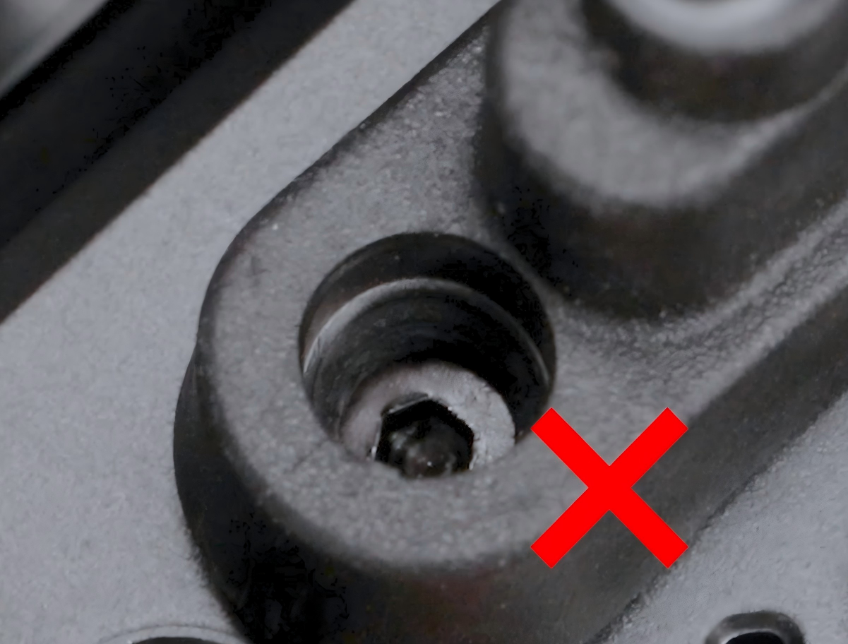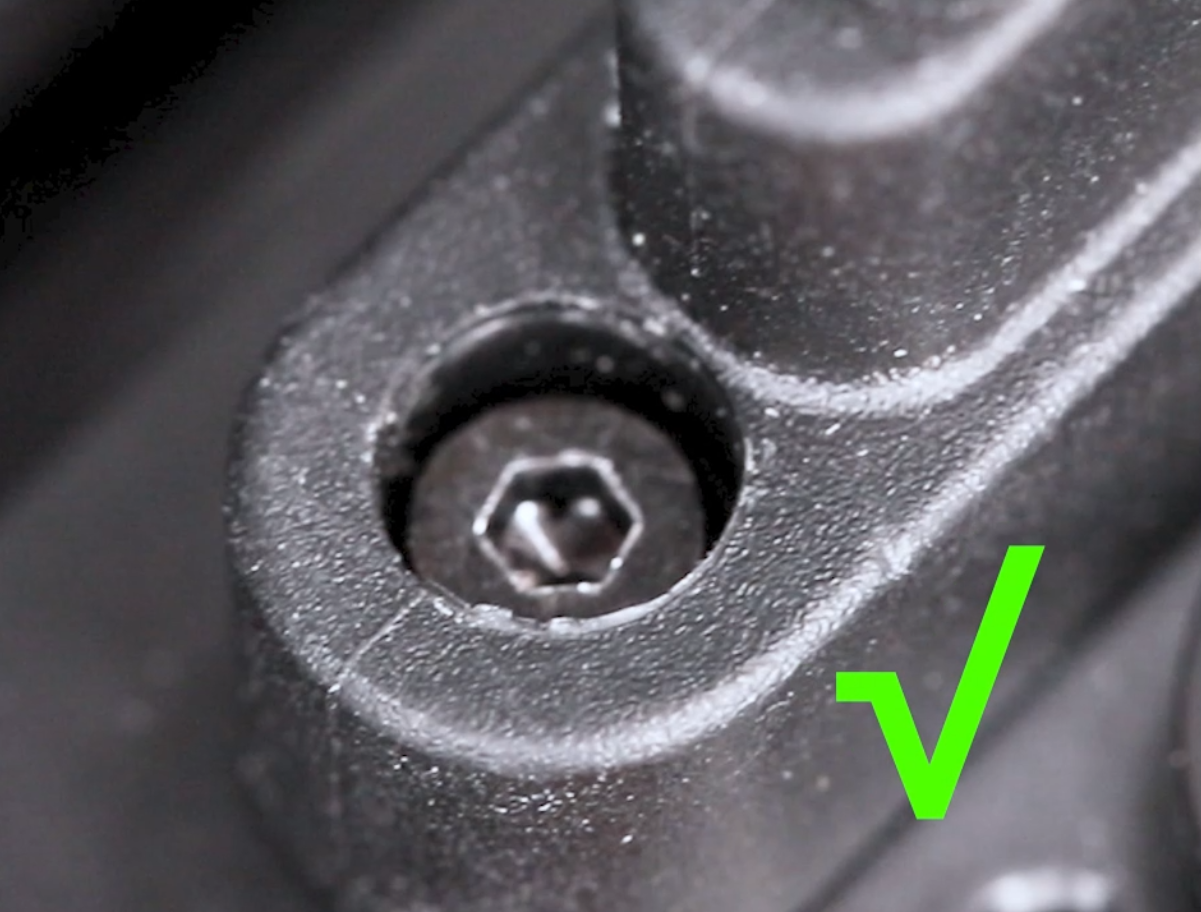 Abnormal Condition: The screw head sinks below the plastic surface, indicating over-tightening.