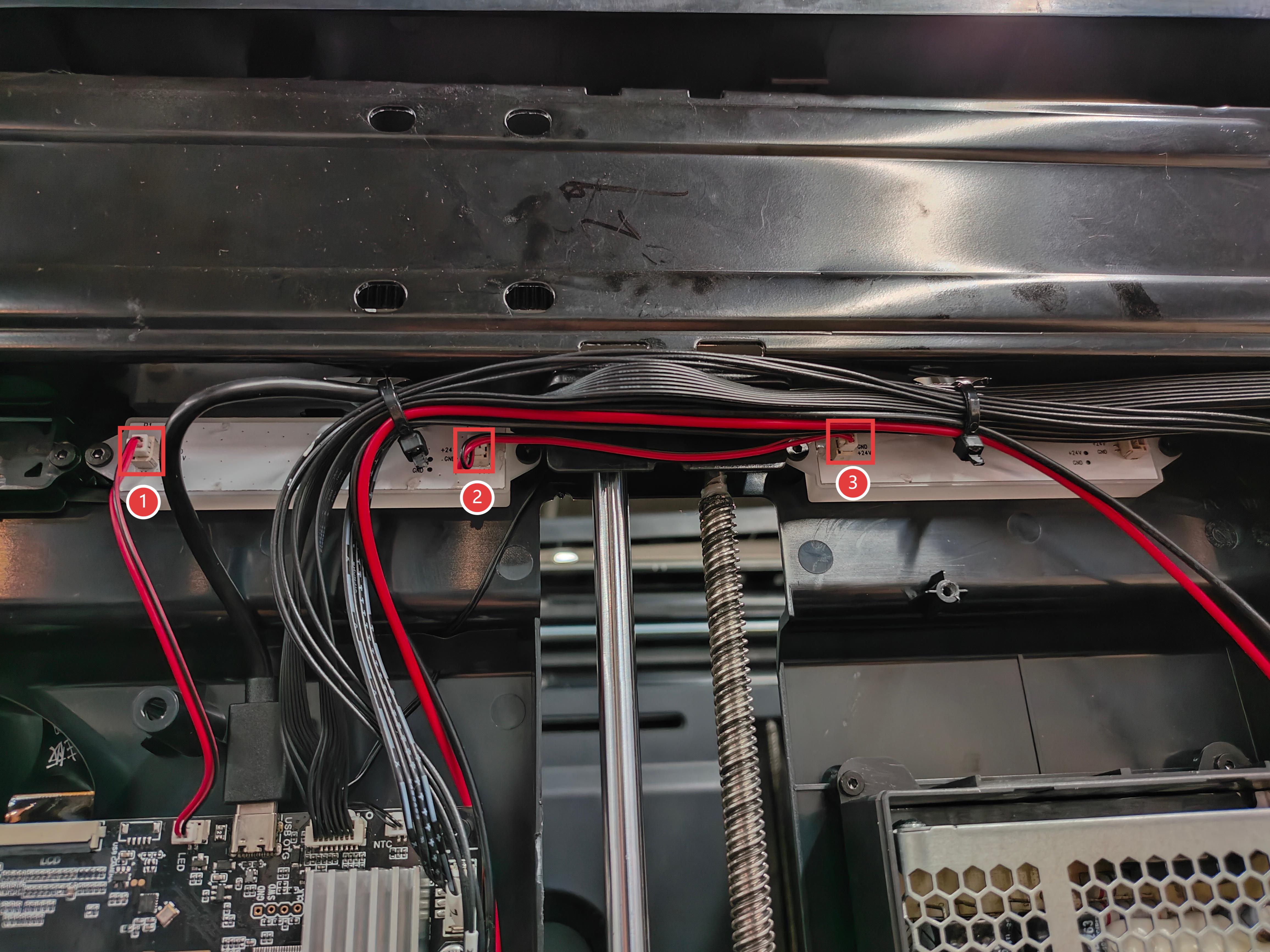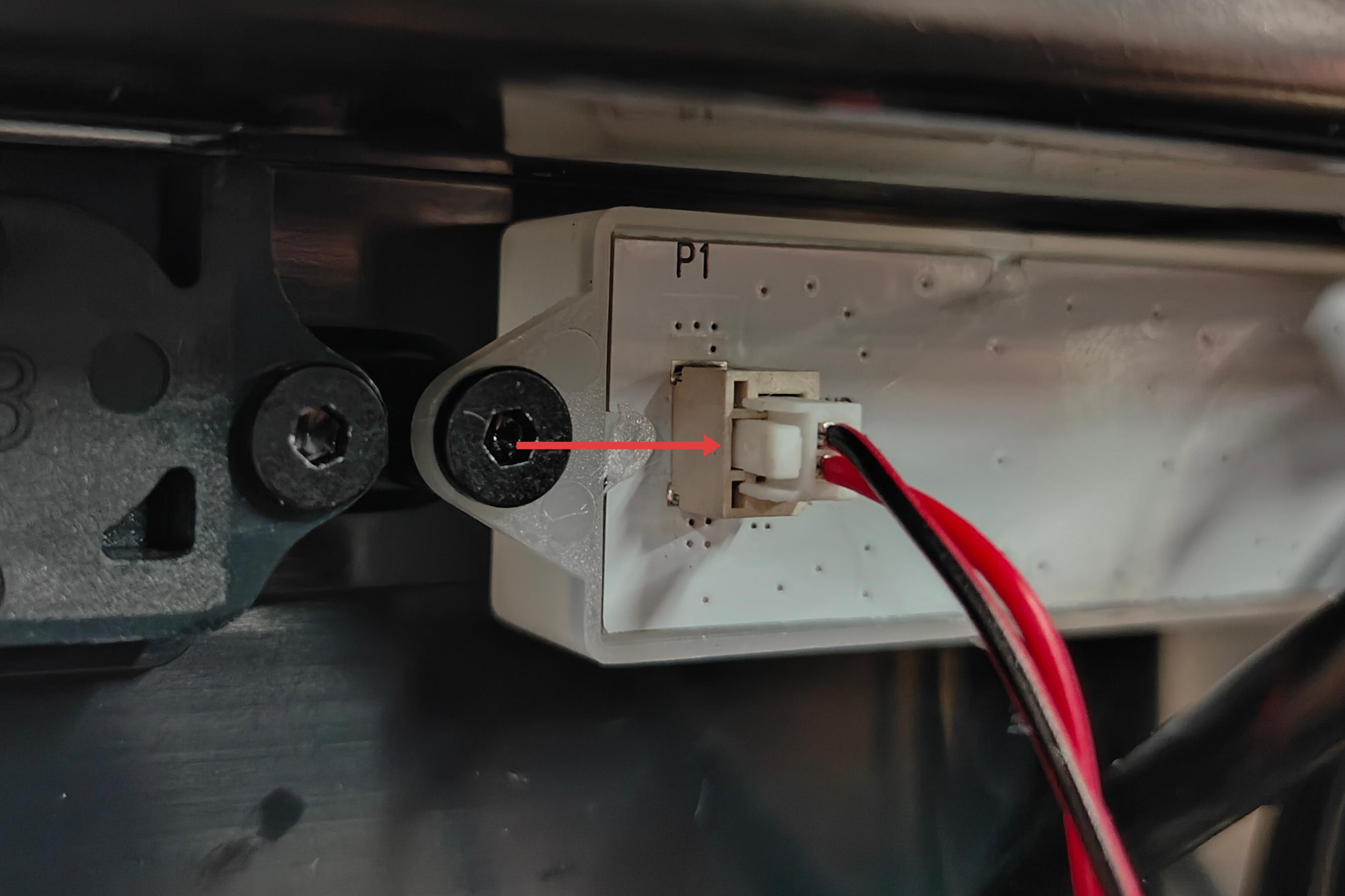 - Next, press point 1 as shown in the image to disconnect the filament feeder cable.