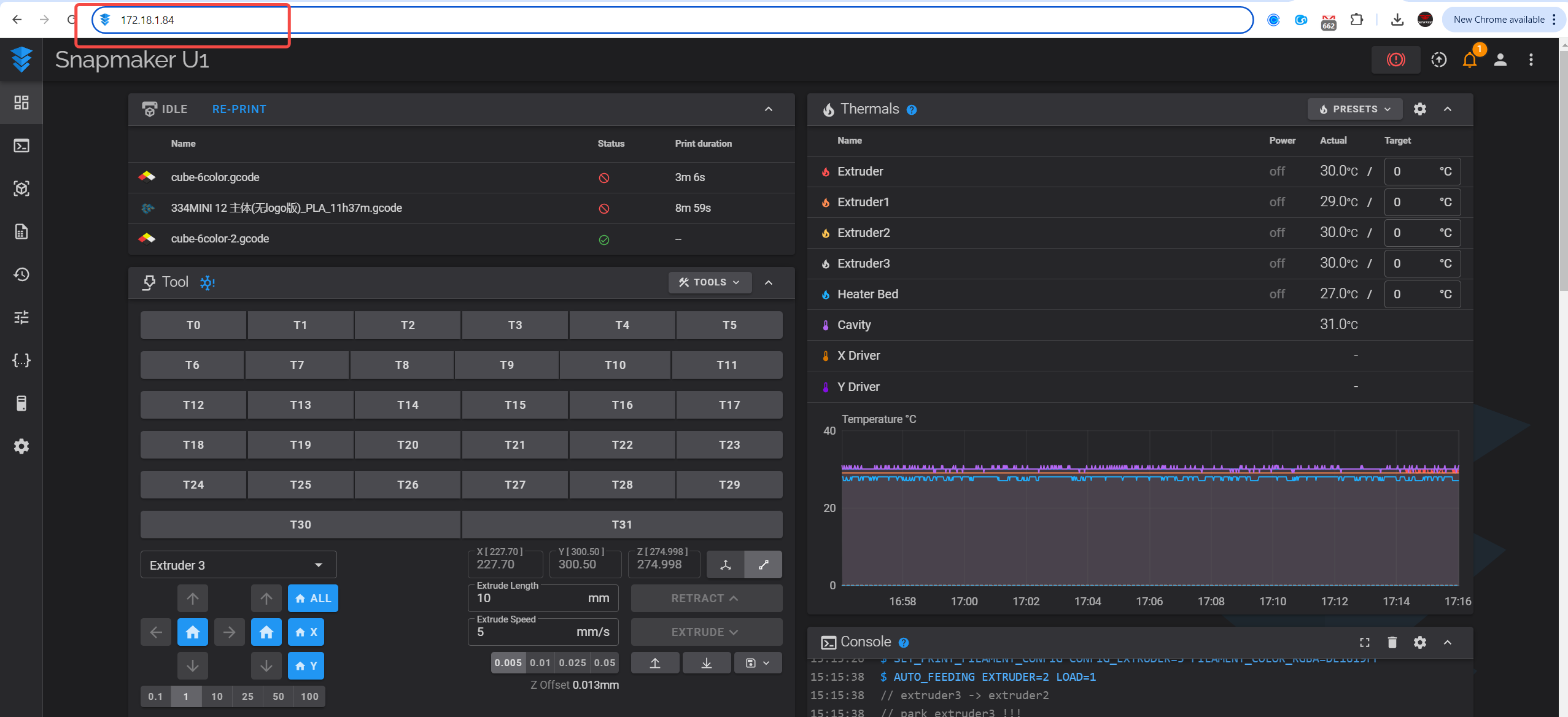 Enter the IP address in your computer browser, such as Google Chrome, to access the Fluidd program