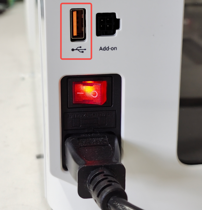 Insert the USB drive into the USB port on the back of the machine.