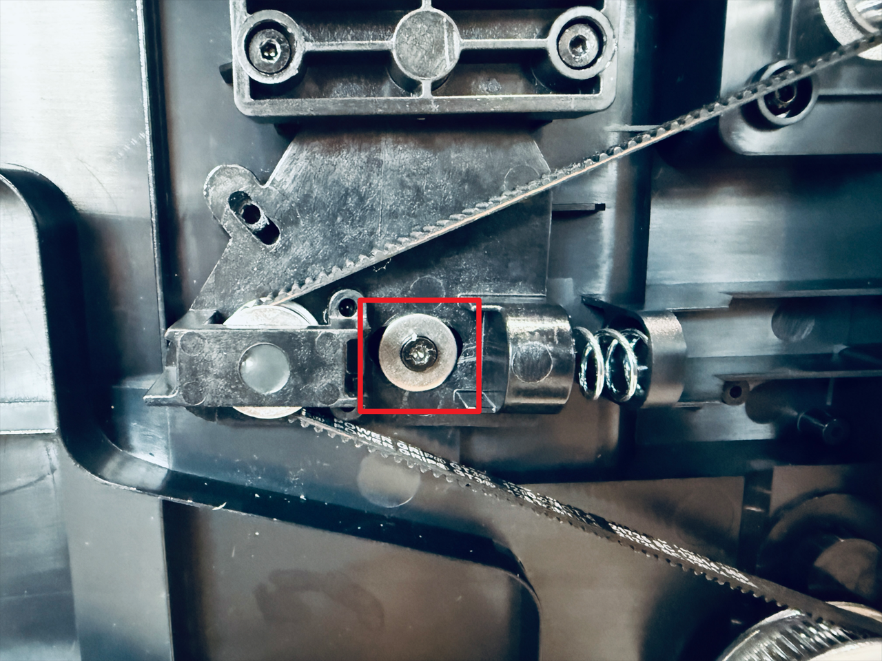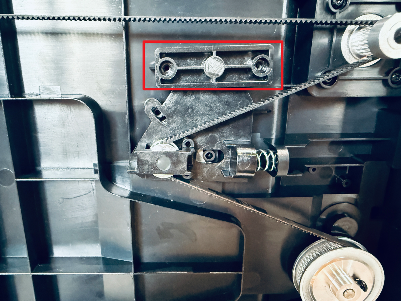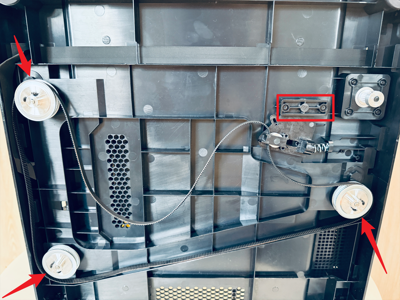The Z-Axis timing belt is located at the bottom of the machine. For easier replacement, it is recommended to place the machine with its back facing down.