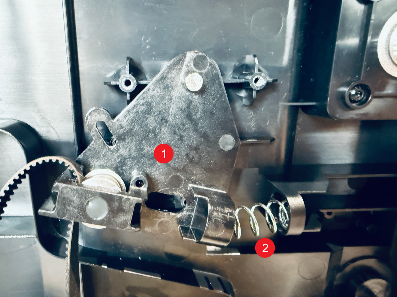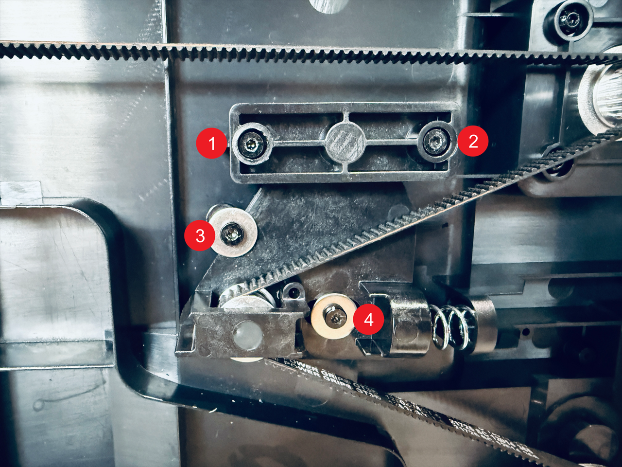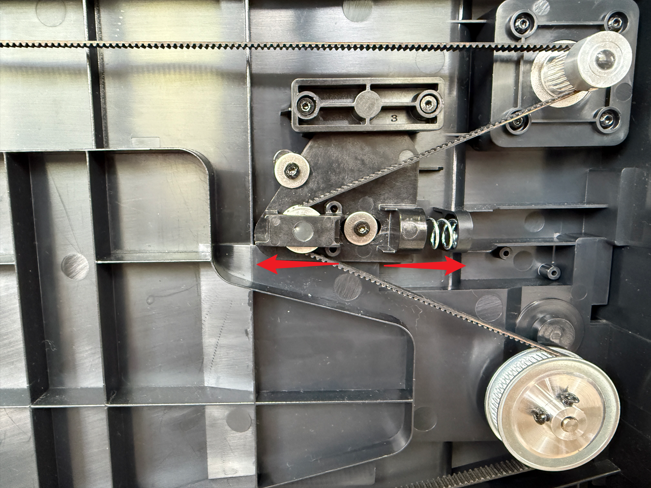 The Z-Axis timing belt is located at the bottom of the machine. For easier replacement, it is recommended to place the machine with its back facing down.