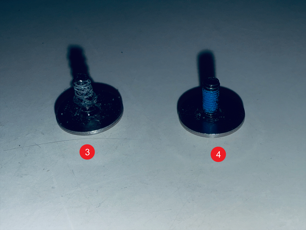 Screw 4 is coated with Nylok Adhesive and must not be confused with screw 3.