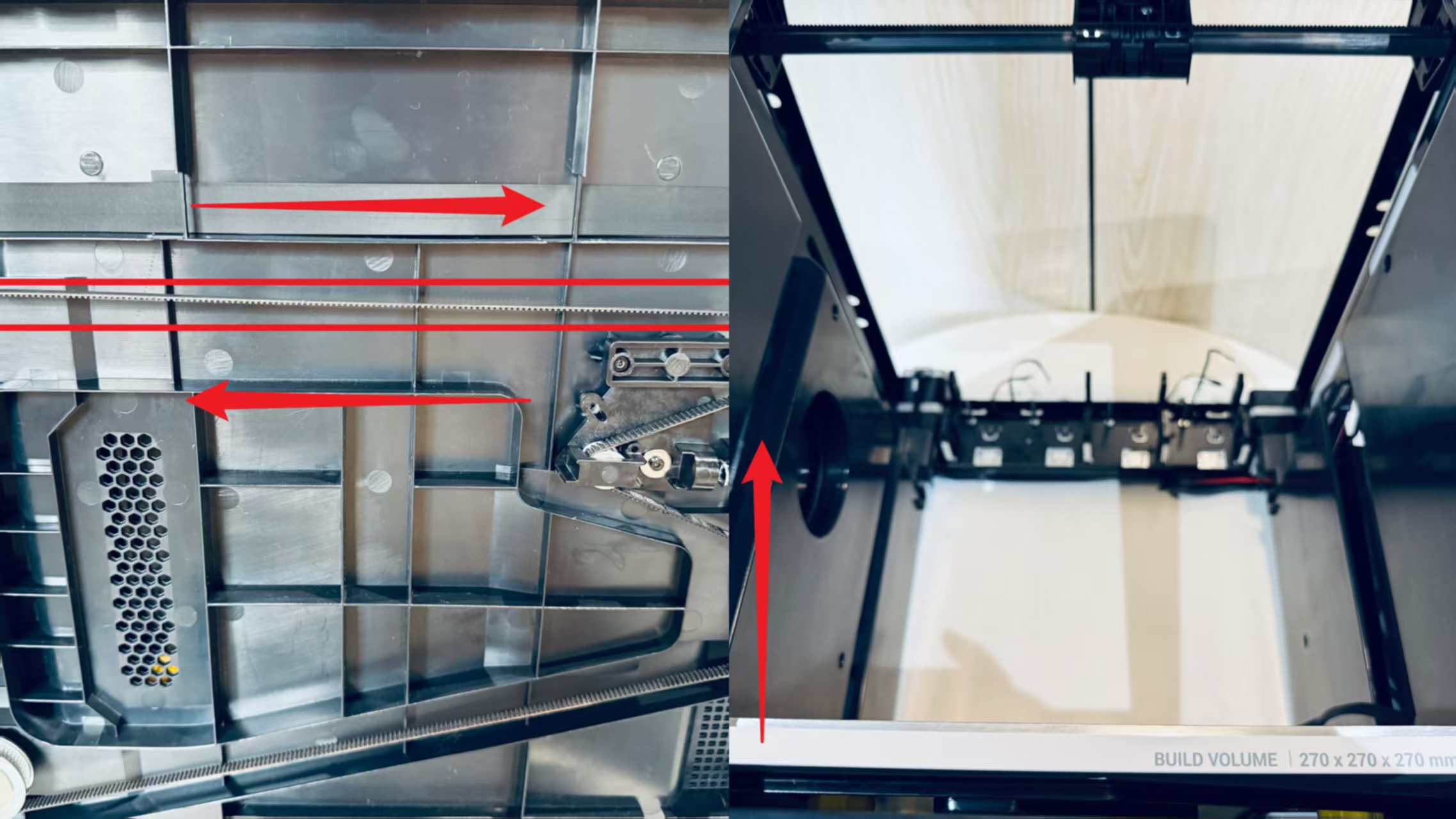 Pull the timing belt left and right to check if the heated bed moves up and down smoothly.
