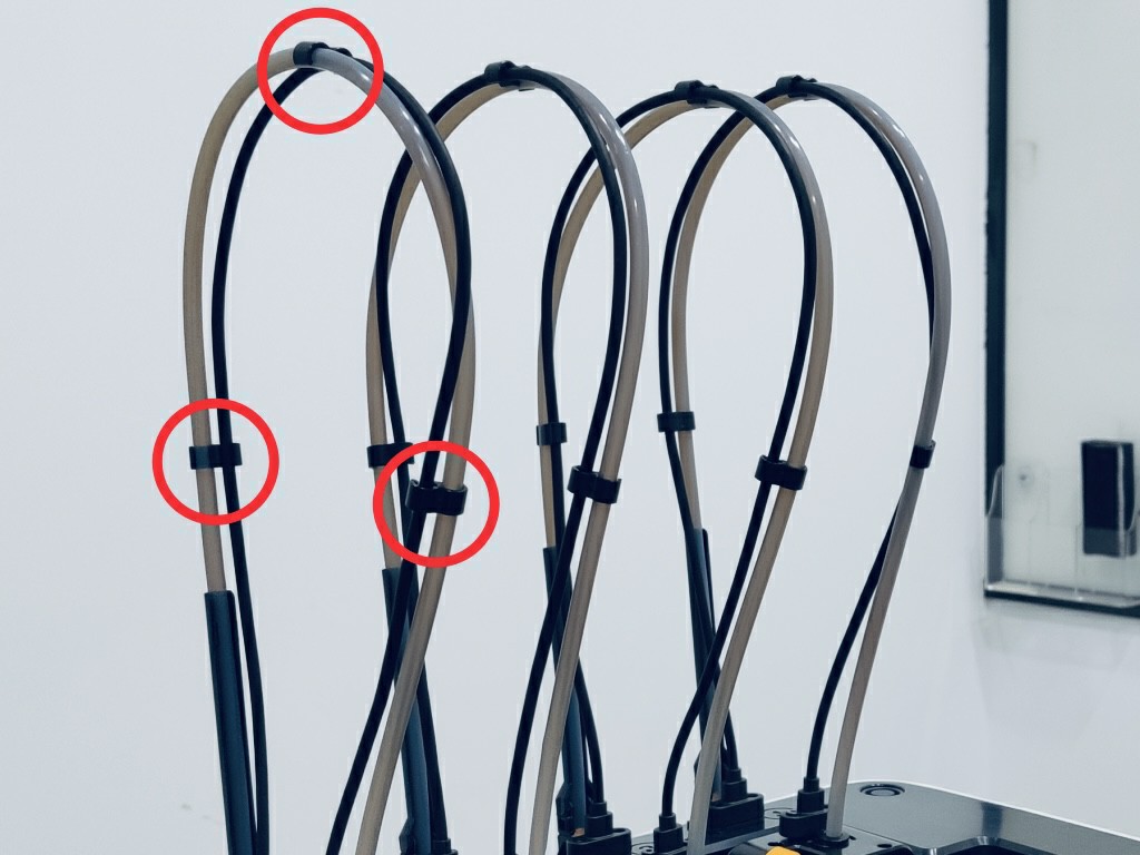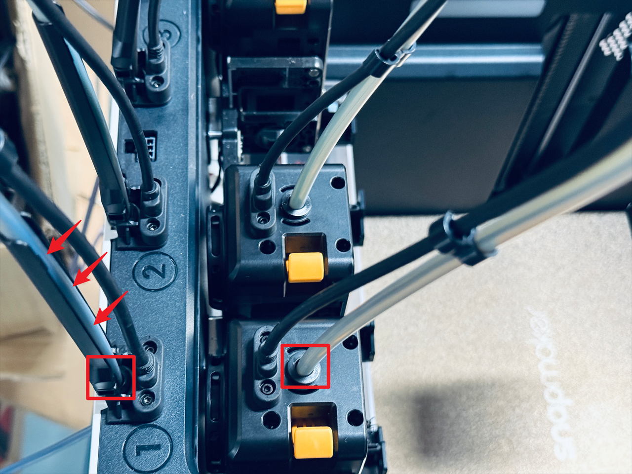 - Finally, use the clips to secure the filament tube and the toolhead USB cable.