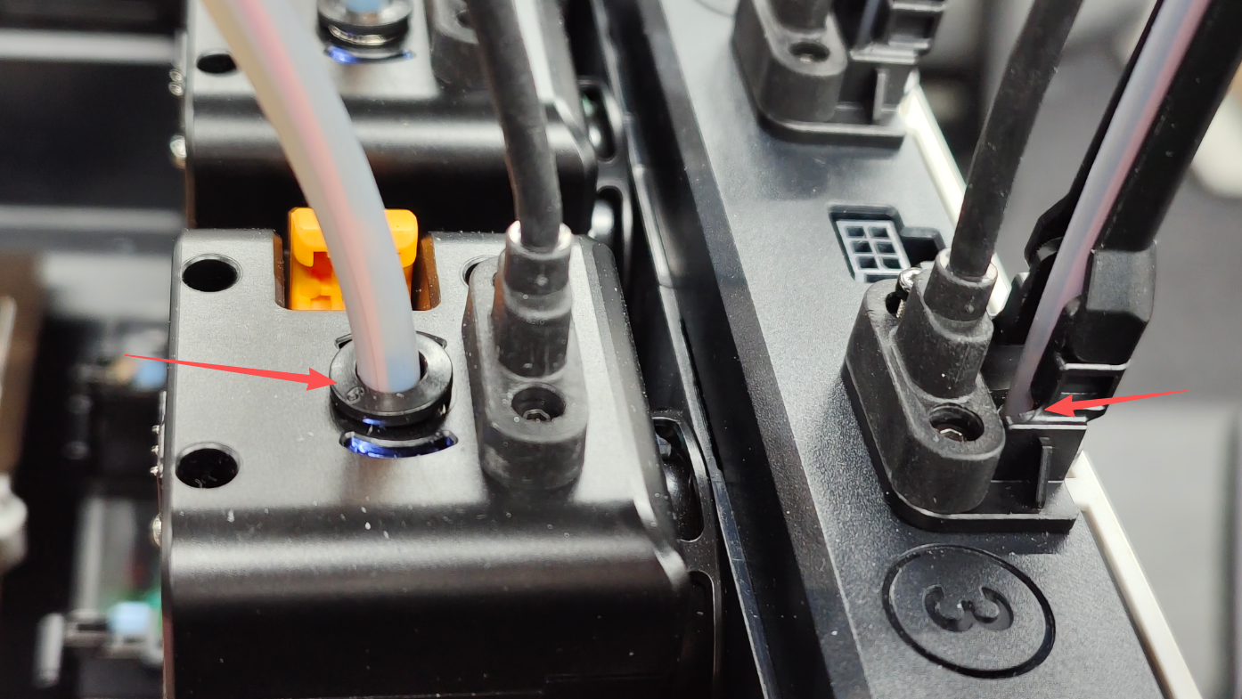 - Insert both ends of the new filament tube into the quick connectors, then press the filament tube into the filament tube holder.