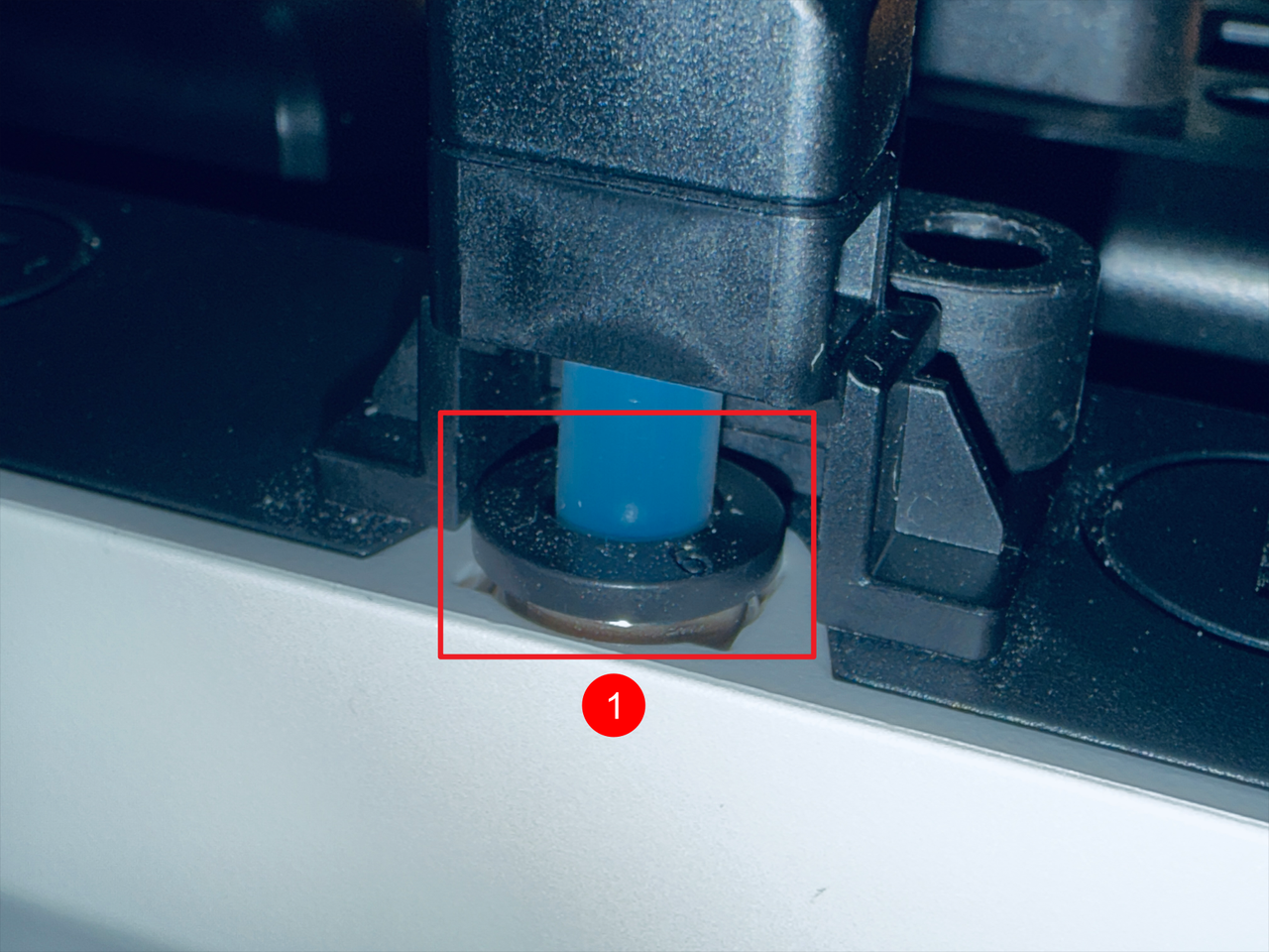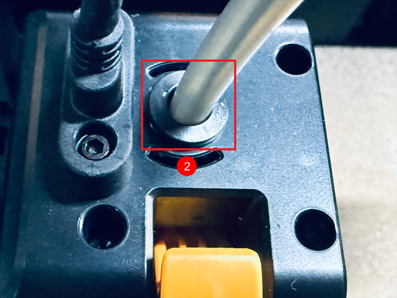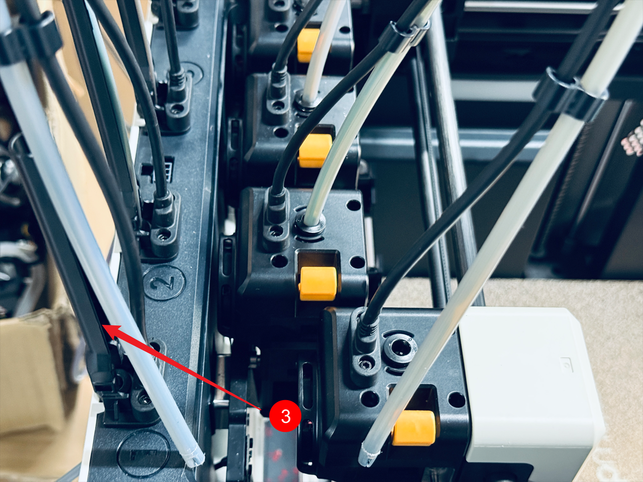 - Press the quick connectors at positions 1 and 2, then remove both ends of the filament tube.