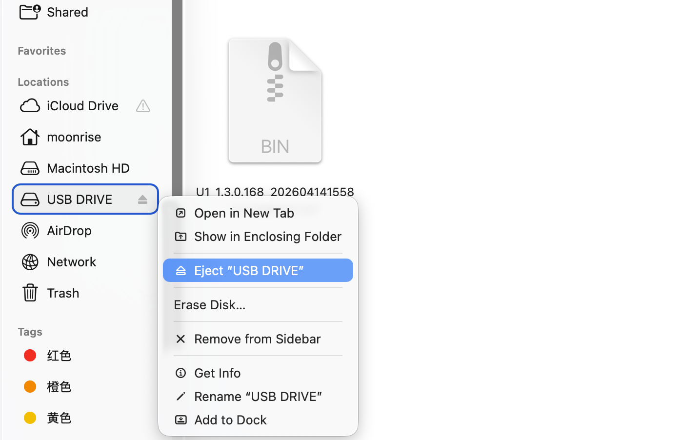 (3) If the error stage remains unchanged, swap the machine-side USB connections of Toolhead F, then retry the firmware update.
