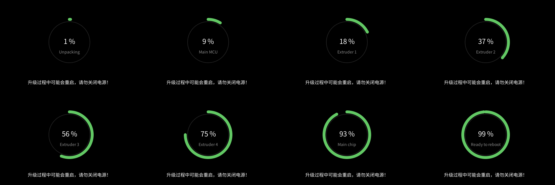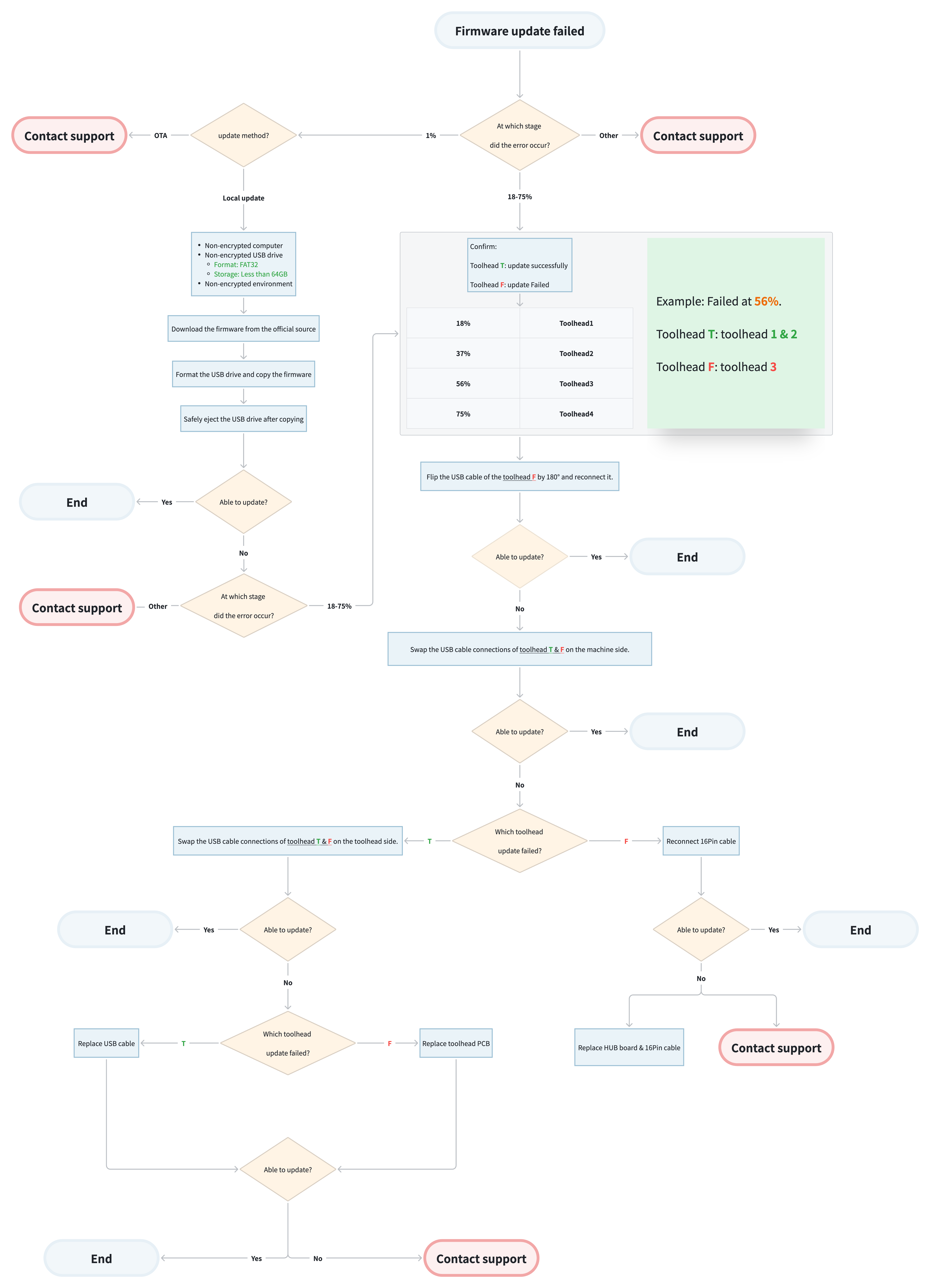 If the error occurs during the 18–75% stage, please continue troubleshooting under 3. Toolhead update failed.