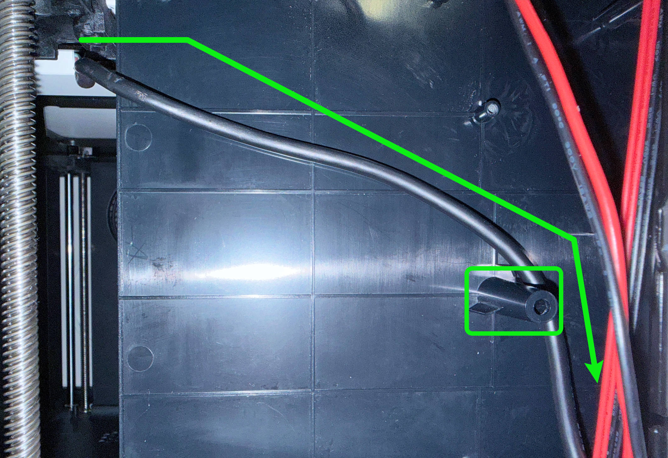 If too much slack remains between the lead screw and the inner side panel, the cable may easily wear when the heated bed moves up and down. Please pay close attention to this!