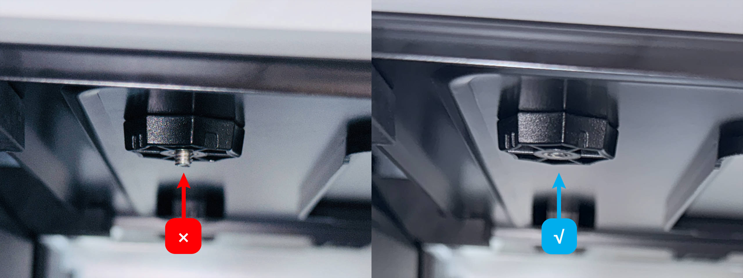 (3) Make sure the bottom surface of the screw is flush with the bottom surface of the nut. Tighten the other three nuts in the same way.