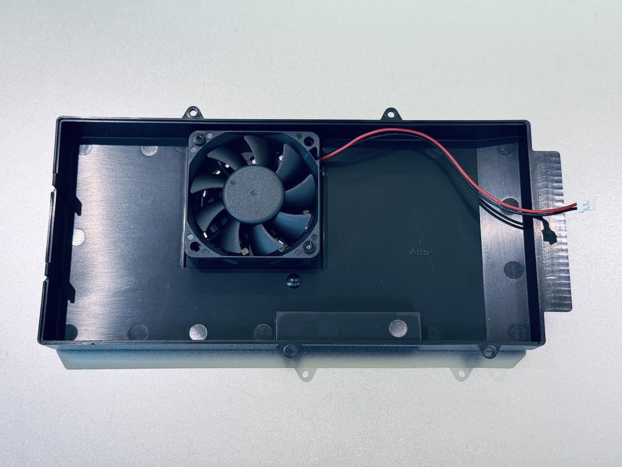 - Connect the power supply cover fan cable, then use the H2.0 hex key to tighten all four screws securing the power supply cover.