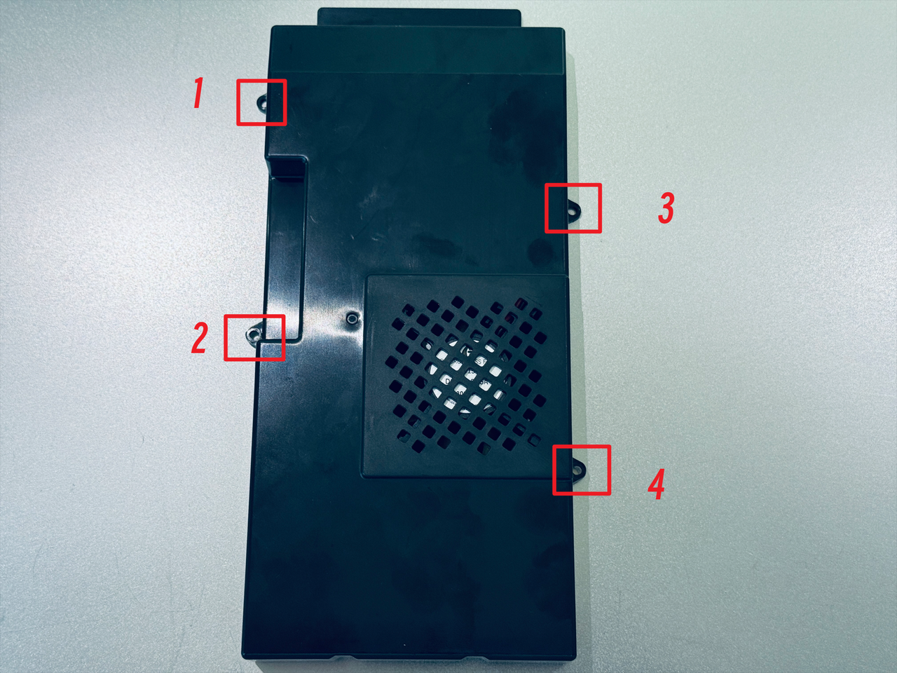 - Use the H2.0 hex key to remove the screws marked 1 to 4 that secure the power supply cover.