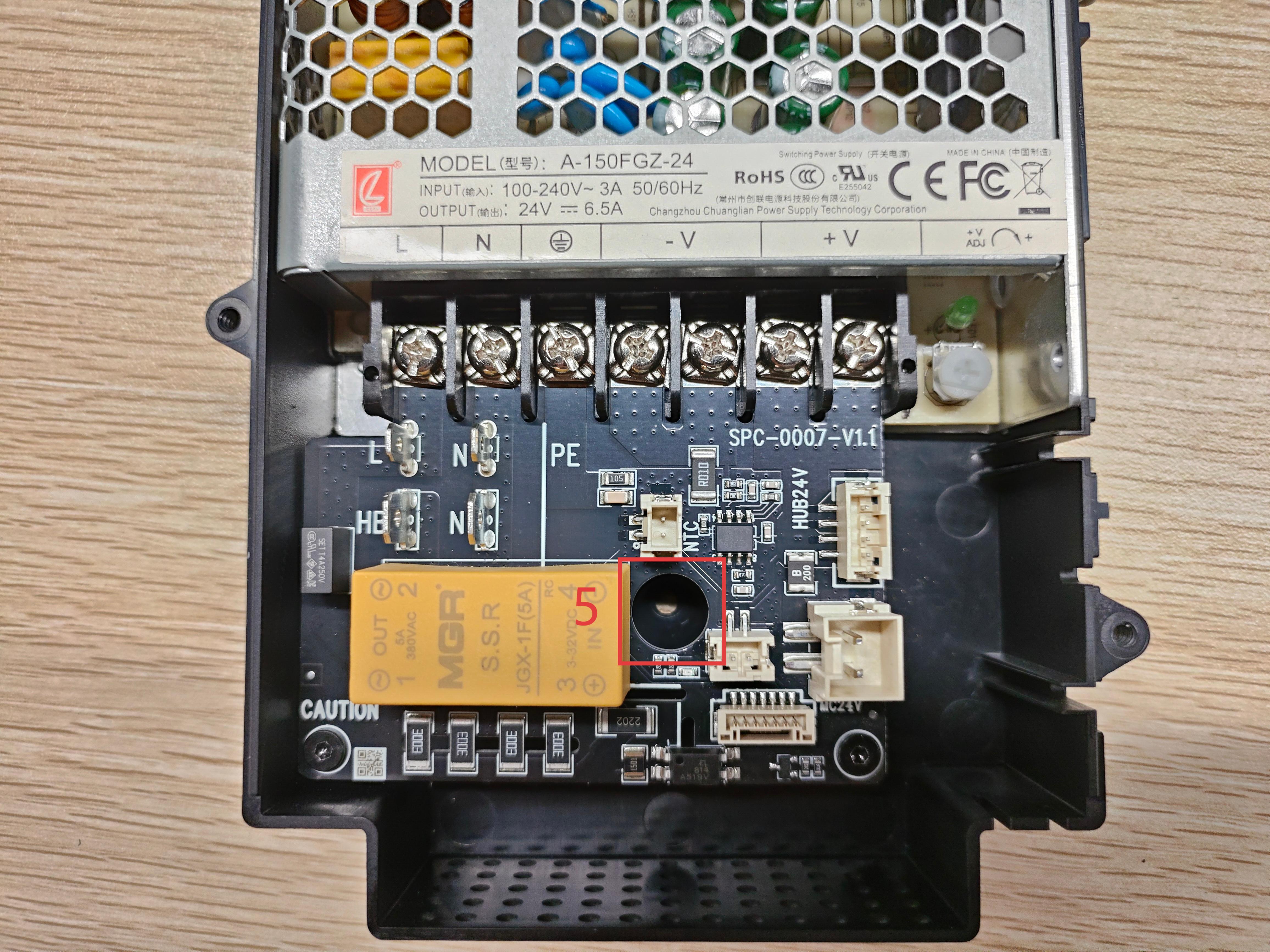 - Use the H2.0 hex key to tighten all five screws securing the power supply box.