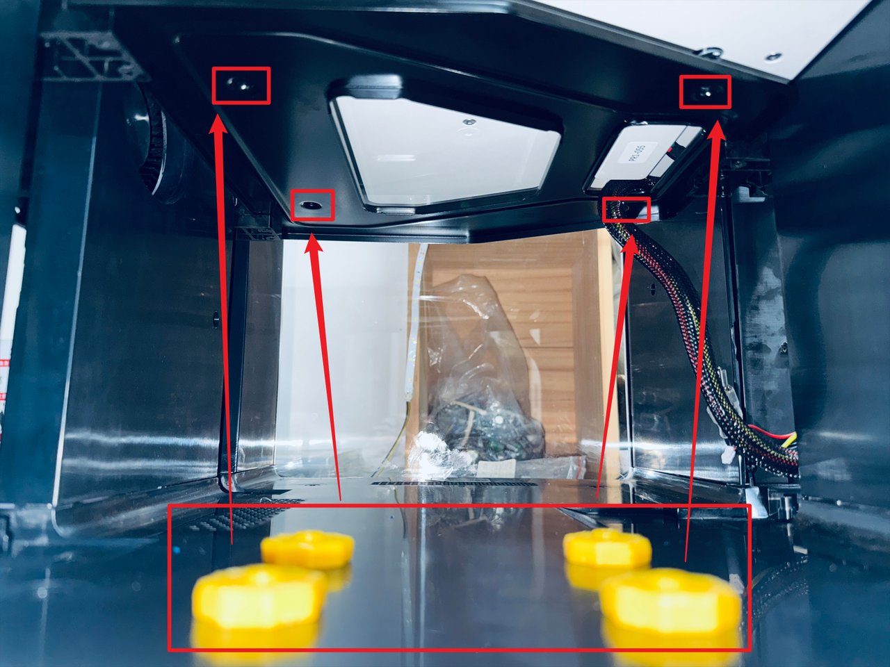 - Take out the silicone plugs from all four corners of the top cover panel.