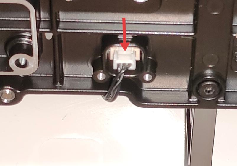 Carefully move the bracket outward and flip it over. Press the clip indicated by the arrow while pulling out the 4 cables of the docking Hall sensor board.