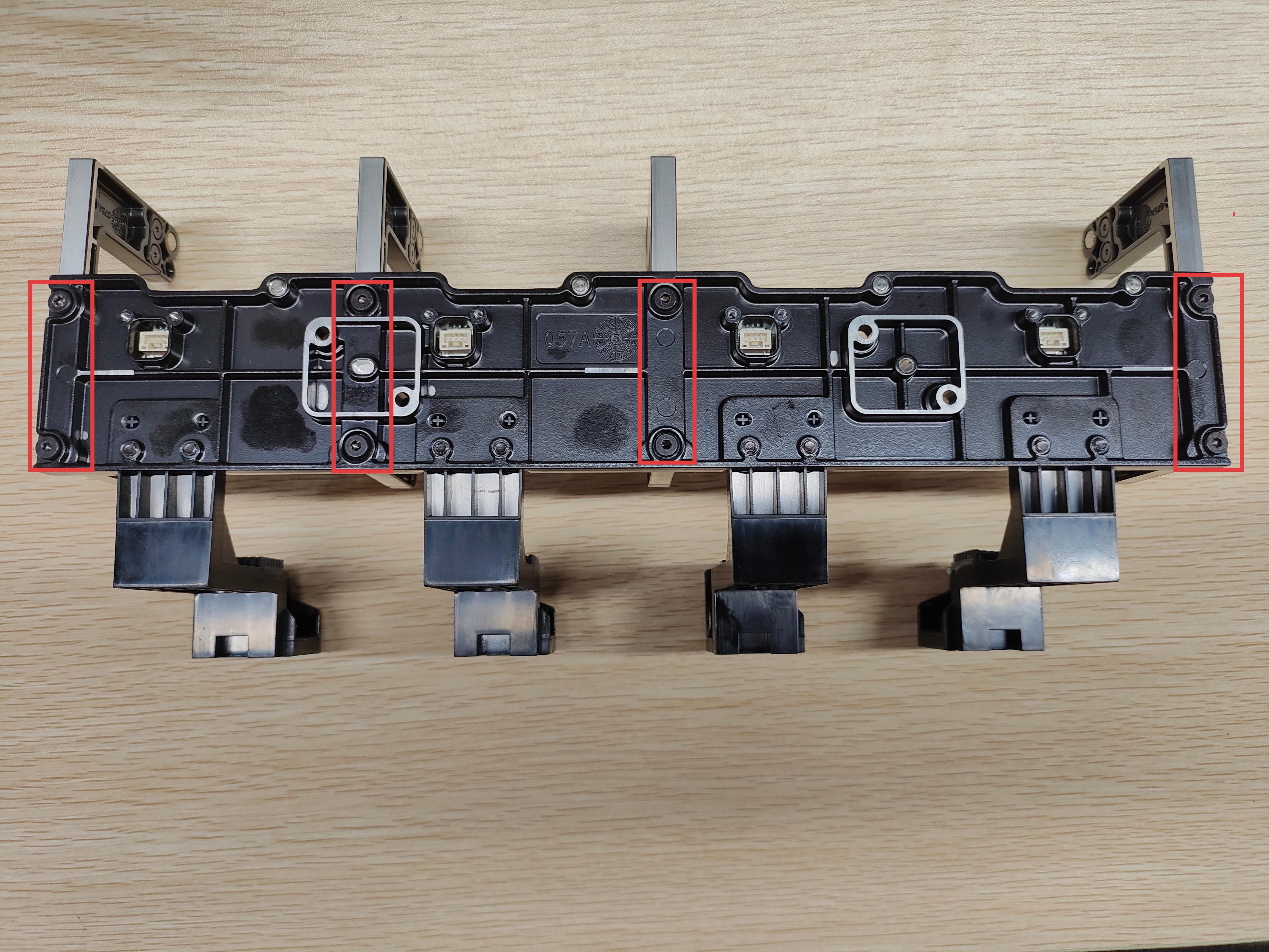 Before installing the toolhead, please make sure the sliders are in the correct positions. The slider for Toolhead No. 1 should be set to the far left, while the sliders for Toolheads No. 2, 3, and 4 should all be set to the far right.