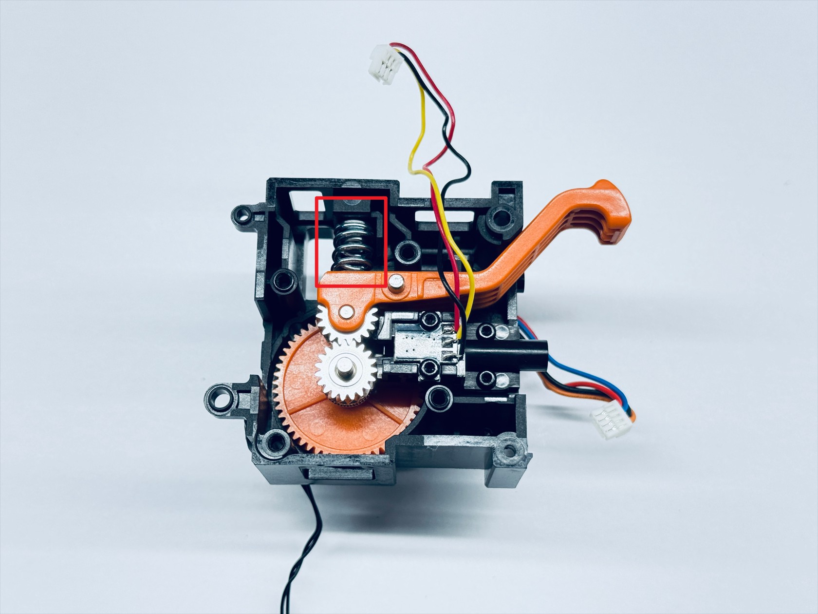 Install the compression spring and spring block, placing the spring block above the compression spring, and use an H2.0 hex key to tighten the spring fixing screw