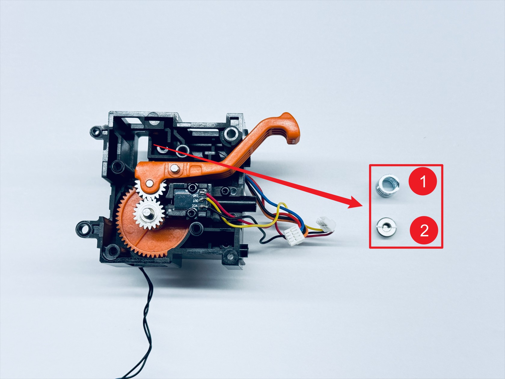Use an H2.0 hex key to unscrew the spring fixing screw and remove the compression spring—1 and the spring block—2