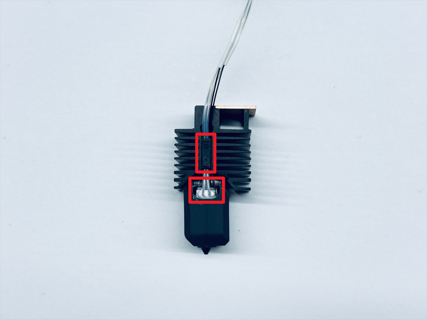 Install the hotend silicone sock, ensuring the notched side faces the same direction as the cable holder