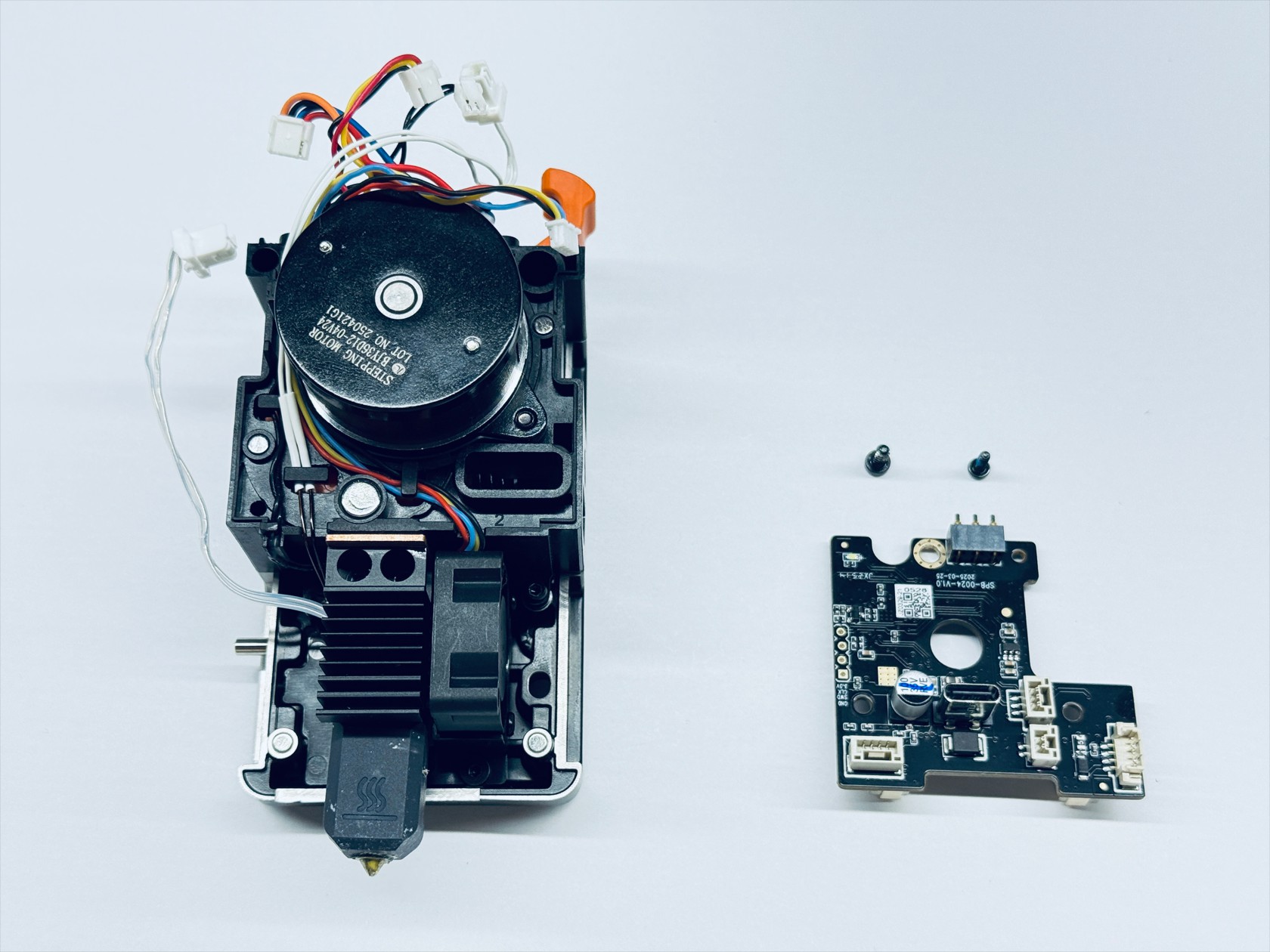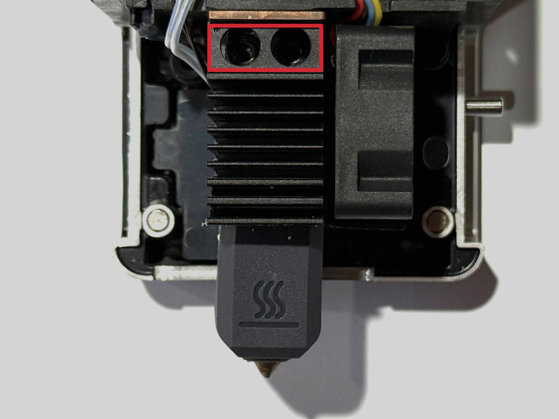 Use an H2.0 hex key to unscrew the 2 fixing screws and remove the hotend