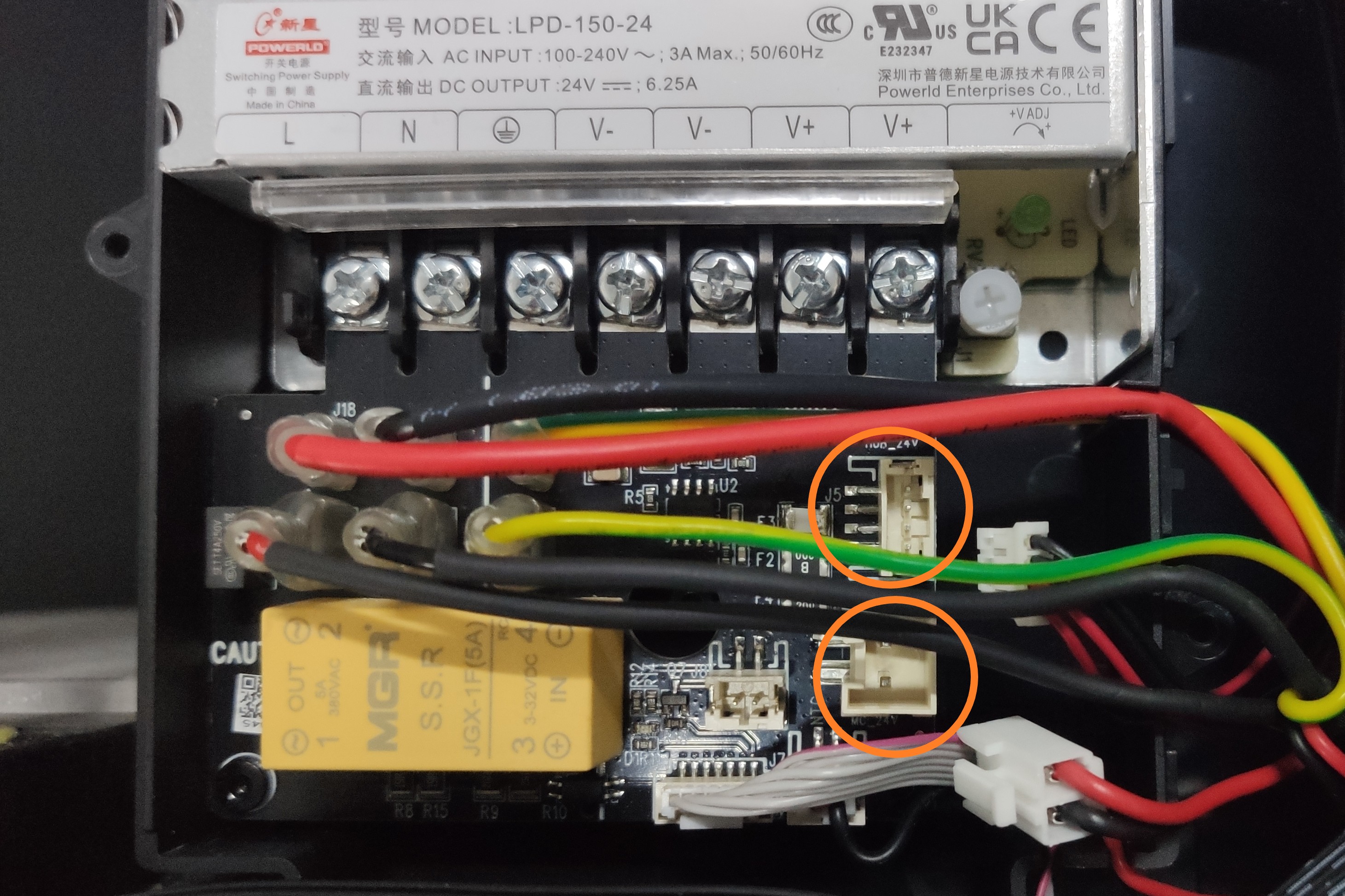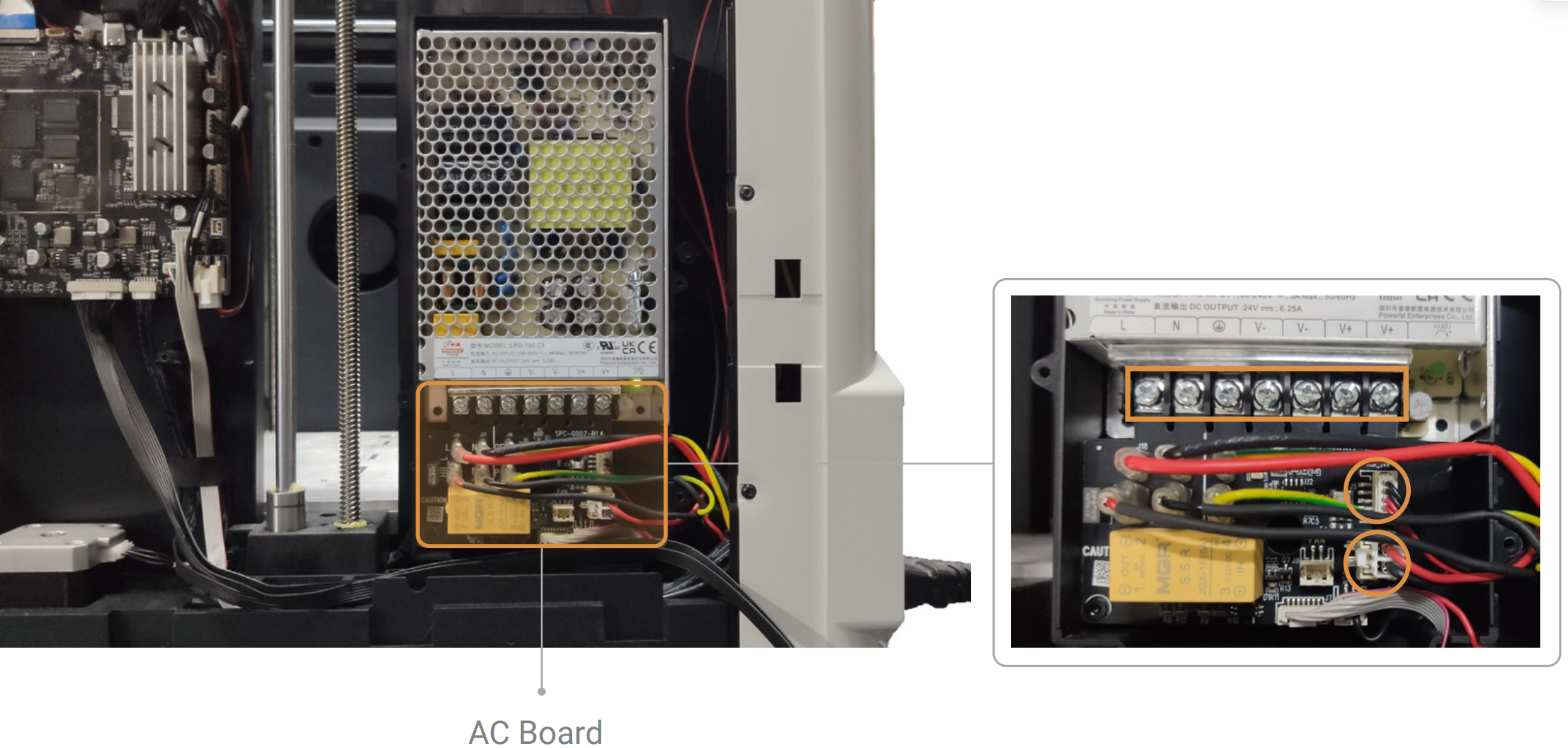 (7)With the machine powered off, disconnect the two cables from the AC board again.