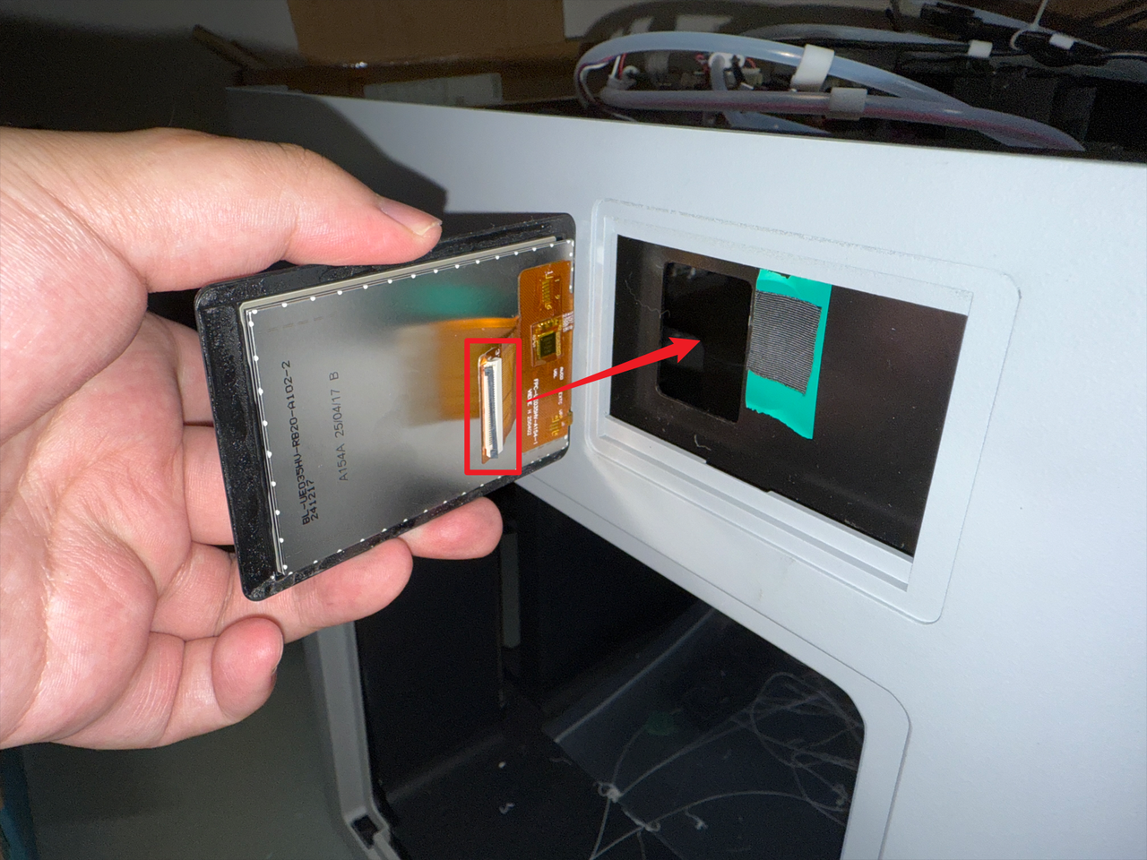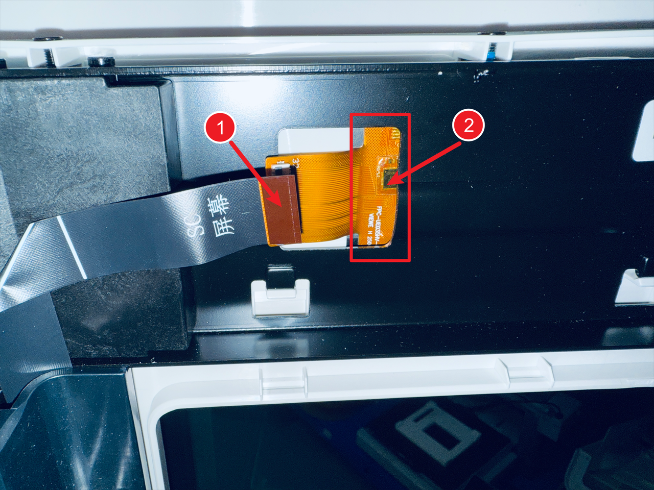 The FFC cable female connector must first pass through the reserved window on the frame.