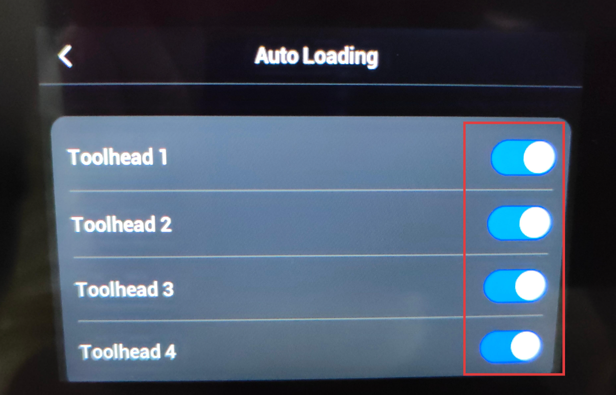 (1) On the touchscreen home screen, navigate to Settings. Select Print Preferences and then Auto Loading. Enable the Automatic Loading function.