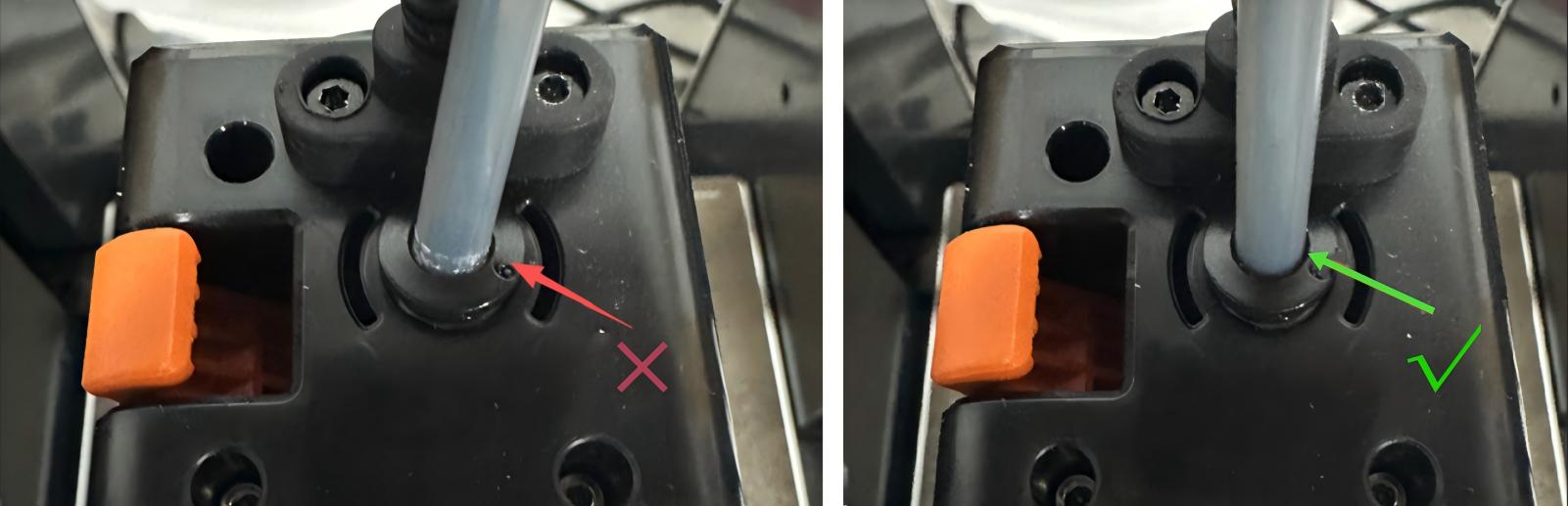 (2) If the filament has not reached the toolhead's filament runout sensor, ensure the filament tube is fully inserted.