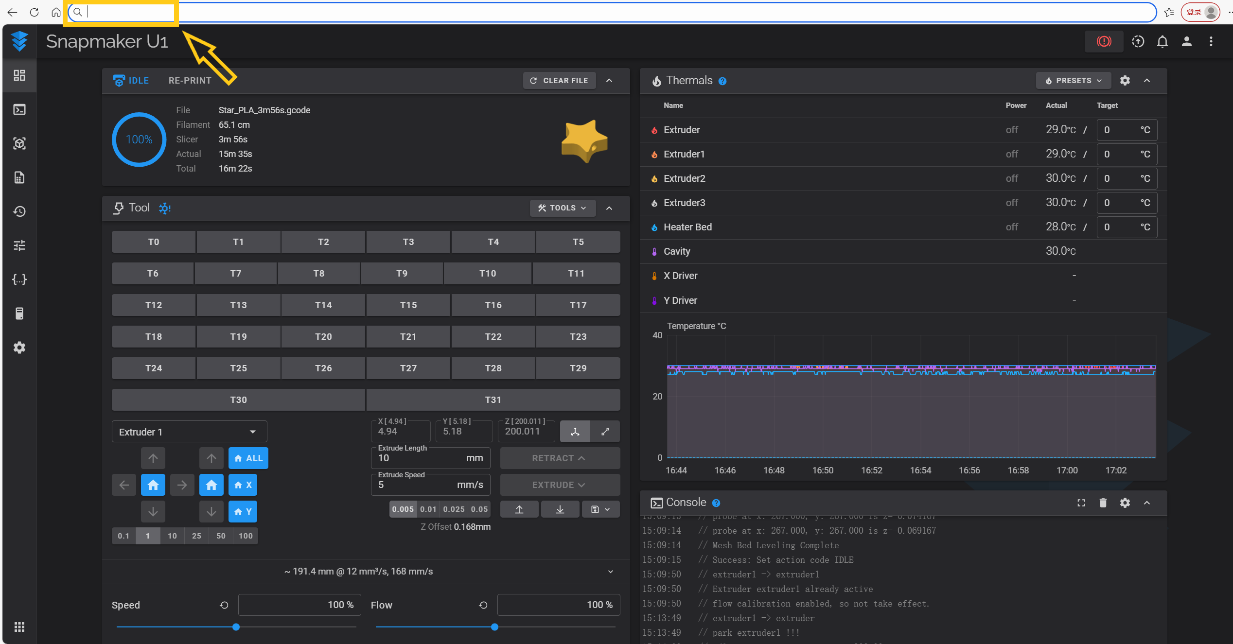 (2) Enter the printer's IP address into the browser on your device (computer/phone/tablet) to access the printer via Fluidd.
