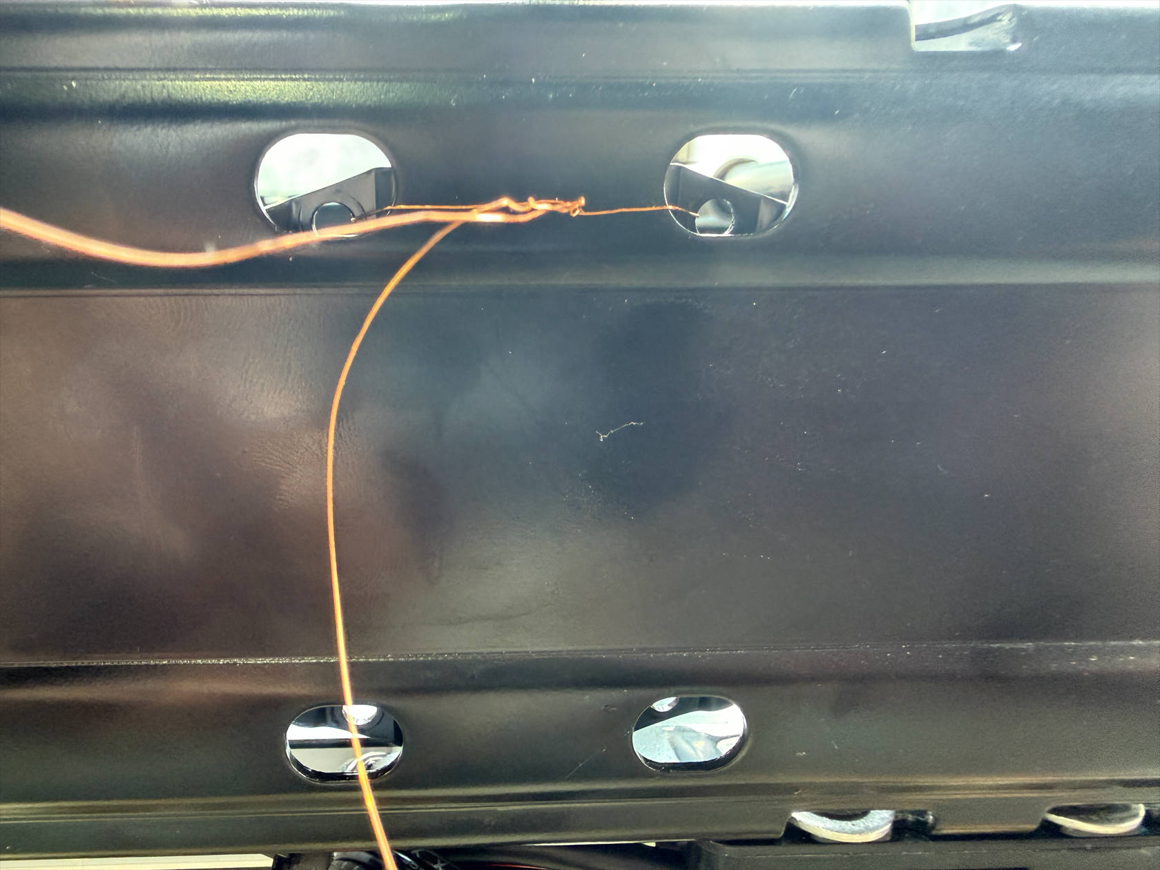 Use fine wire or copper wire to secure the metal plates on both sides of the Y-axis that were originally connected to the carbon rod, pass the wire through the holes on the top of the frame on both sides, through the corresponding holes on the metal plates, then out from the other end and fix it on the frame as shown