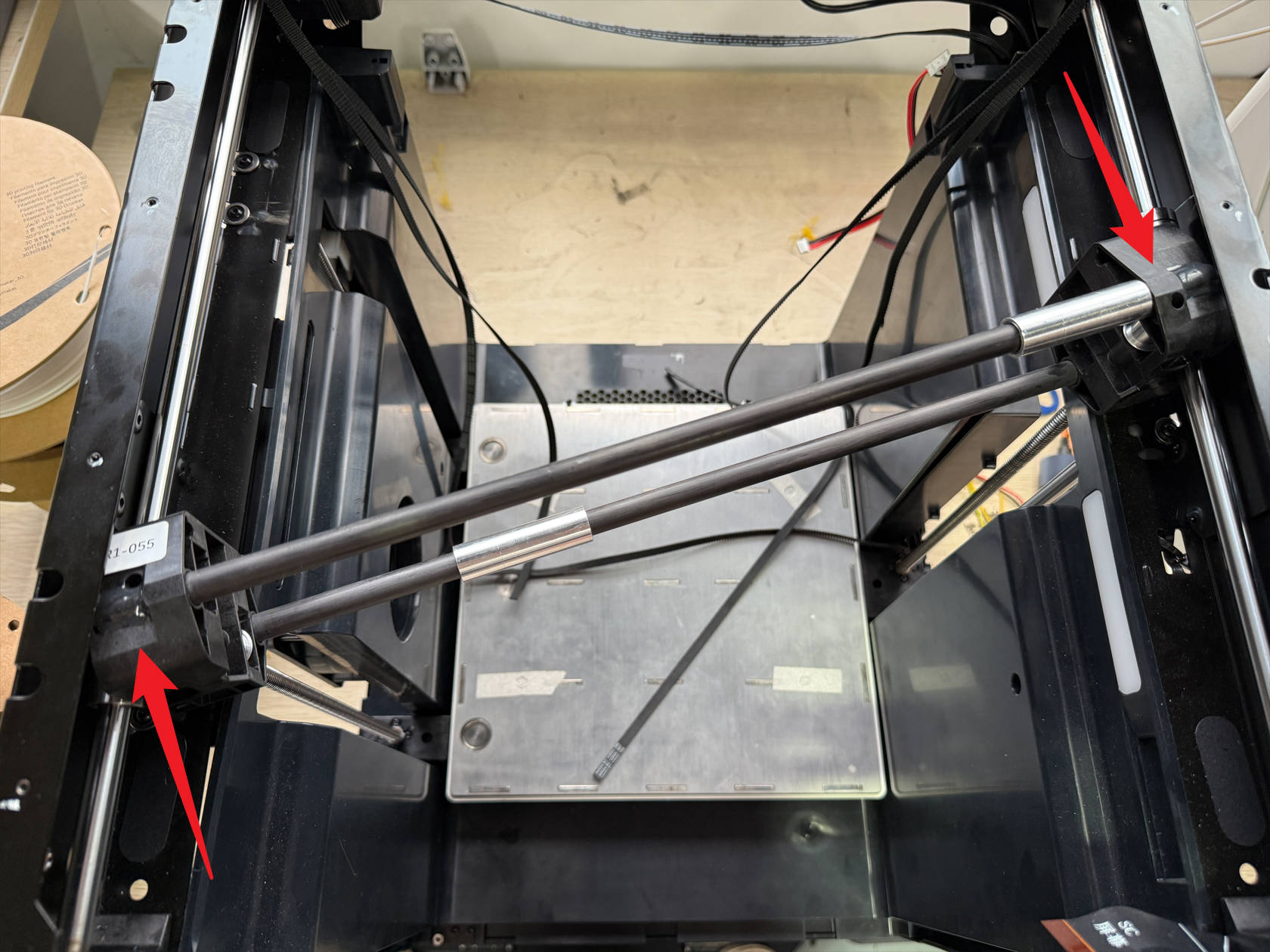 The X carbon rod assembly is located on the X-axis and is connected to the toolhead converter. Before replacing it, you need to remove the toolhead converter.
