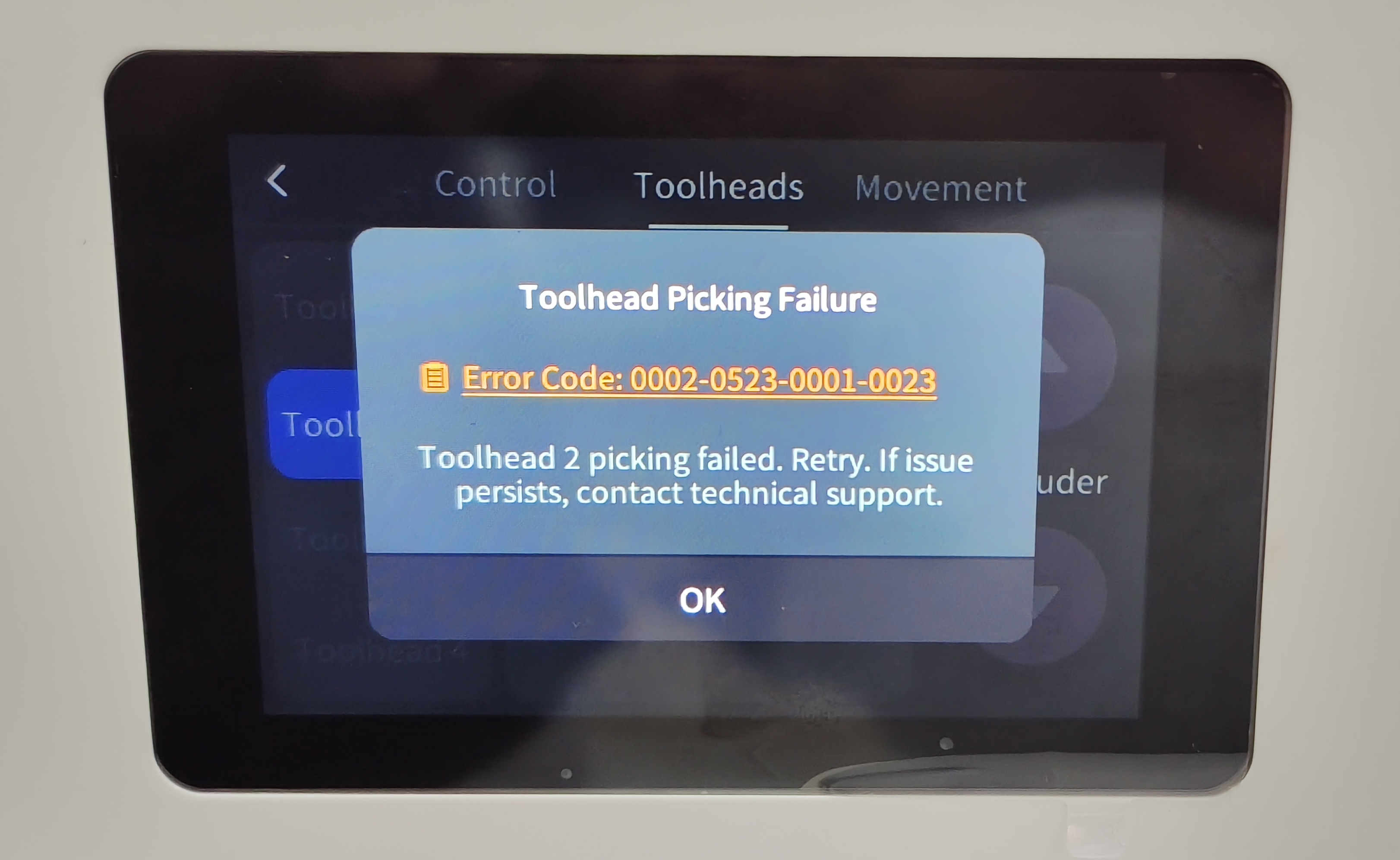 Before clicking 'Got it' to confirm the error and restart the print, please clean the pogo pin contacts with a dust-free cloth and alcohol. Make sure there is no dust or grease on the surface.