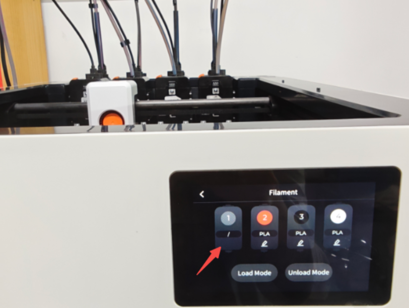 Click "Unload" to completely retract the filament from the filament feeder and the toolhead.