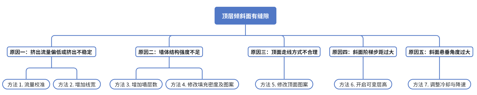 顶层倾斜面有缝隙,通常是由顶层挤出不足、墙体结构稀疏和斜面本身的阶梯感共同导致的。