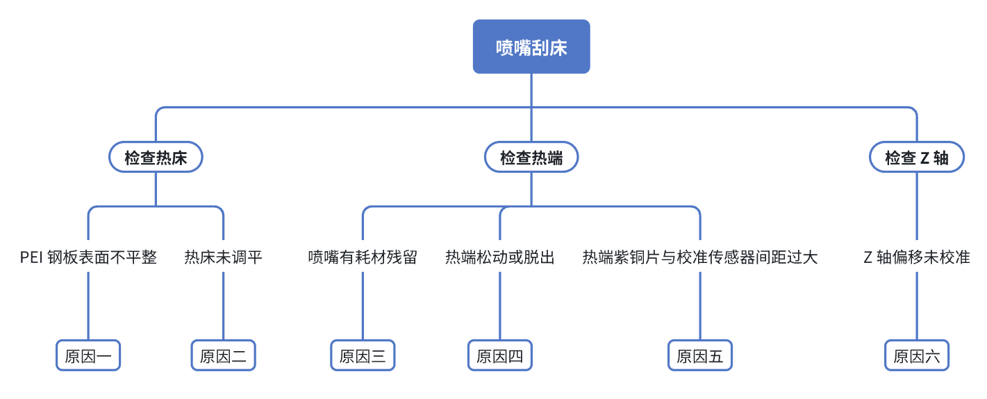 - 喷嘴在移动时与热床发生刮擦或碰撞;