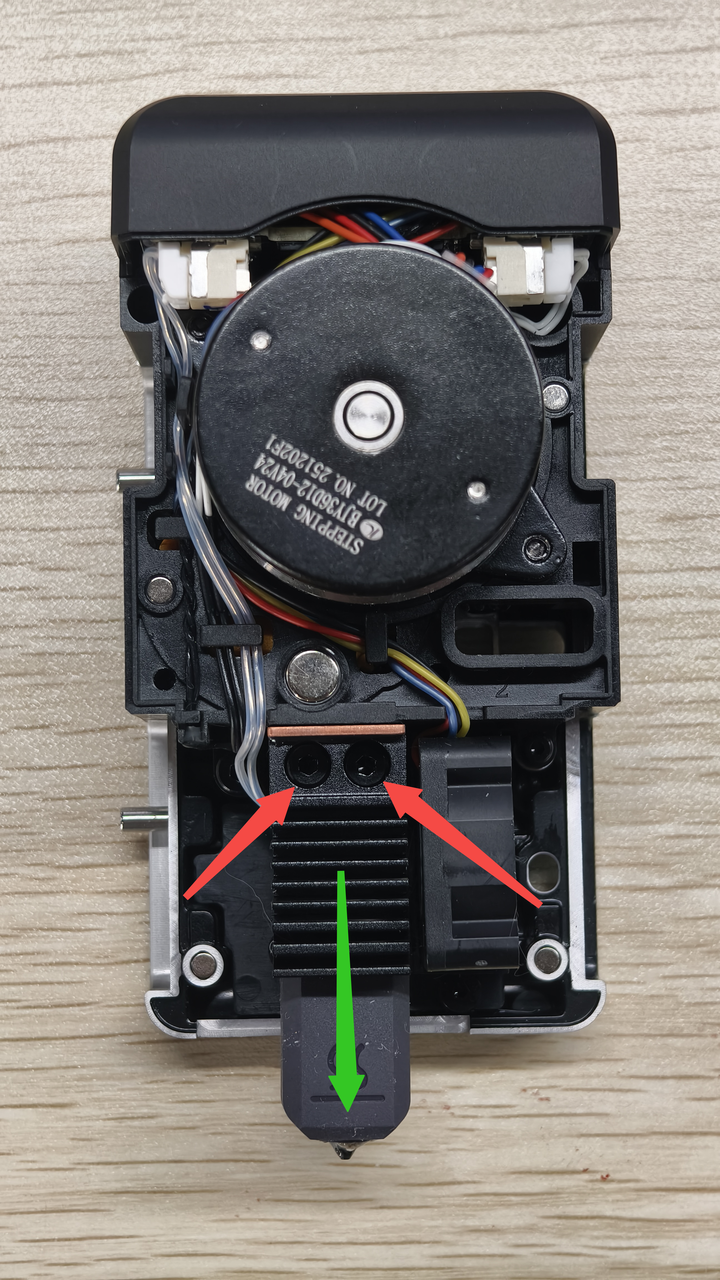 - 用手轻轻摇晃热端组件。正常的热端应稳固无晃动;若热端上下晃动,表明热端组件可能出现松动。