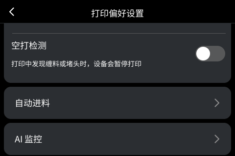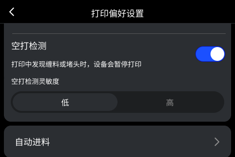 - 在屏幕 打印偏好设置 中,将 空打检测 的灵敏度调为 低。