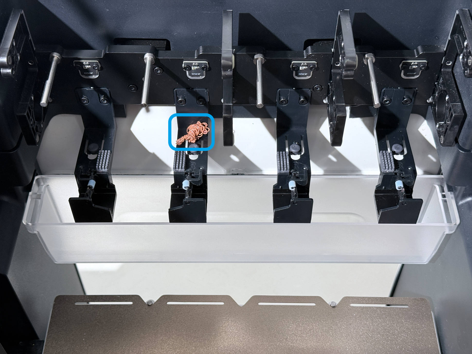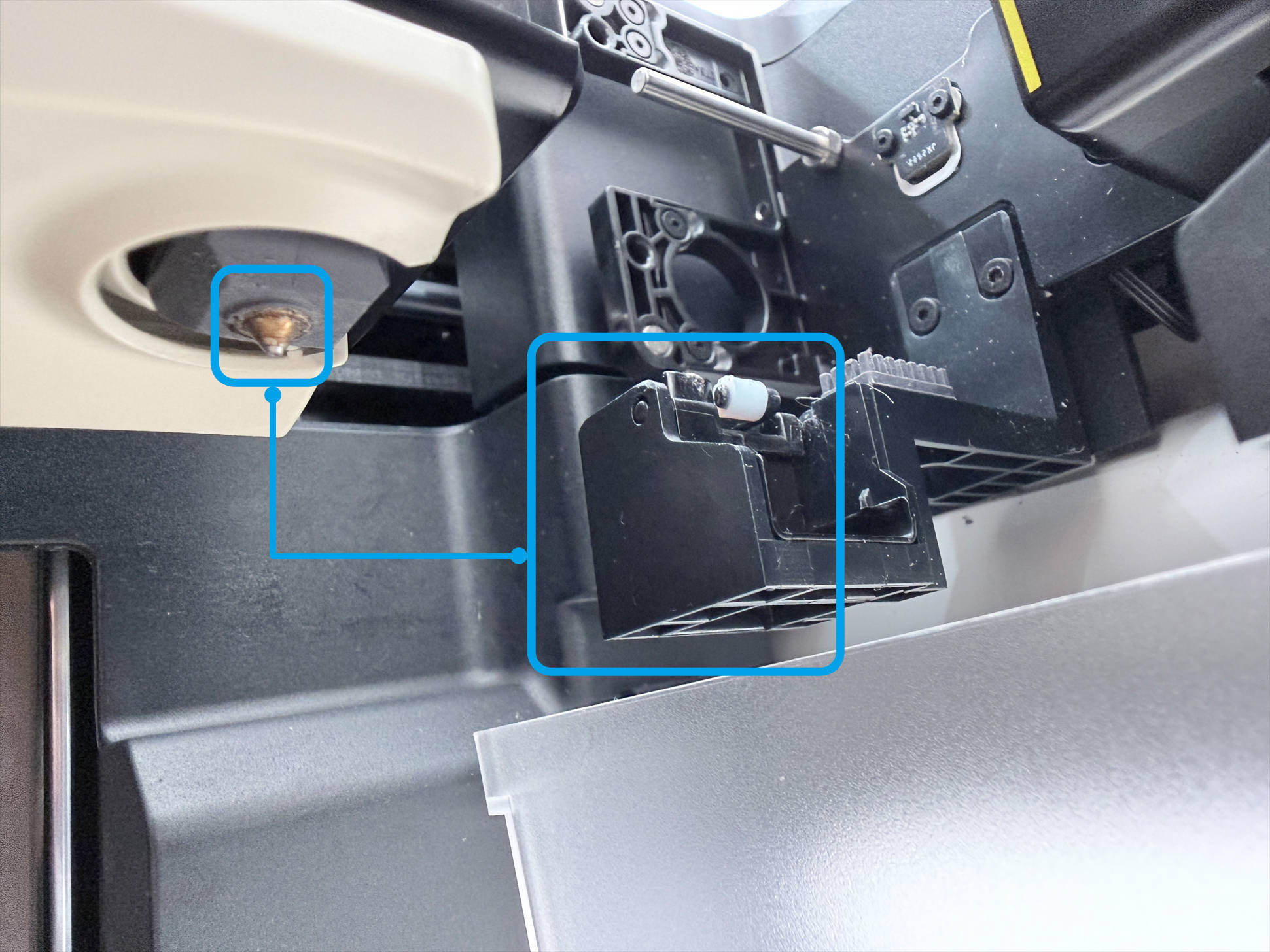 2. 取头销已对准,但打印头转换器和打印头距离太远(可能性较小,需在Fluidd中进一步调整坐标)。