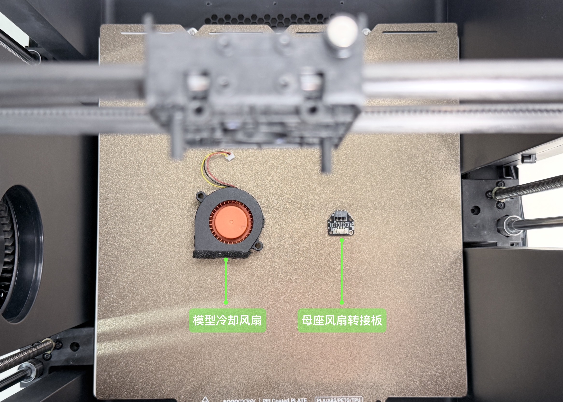 (2) 安装模型冷却风扇和母座风扇转接板,分别使用H1.5 & H2.0内六角扳手拧紧第4、5组螺丝,还原风扇接线。