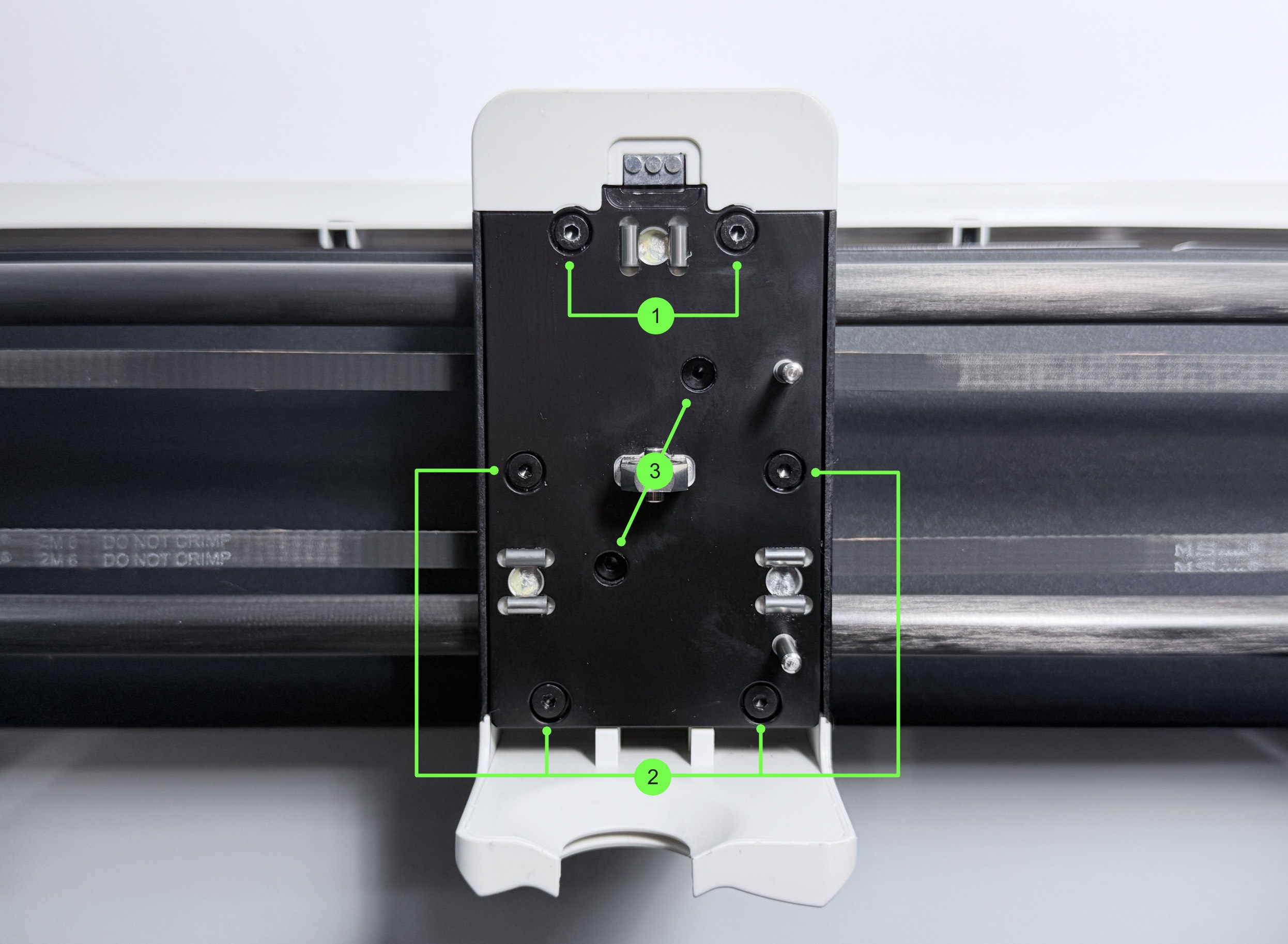 (4) 将机器正面朝下放置,使用H2.0内六角扳手拧下第6组螺丝,移除X轴滑块-2。